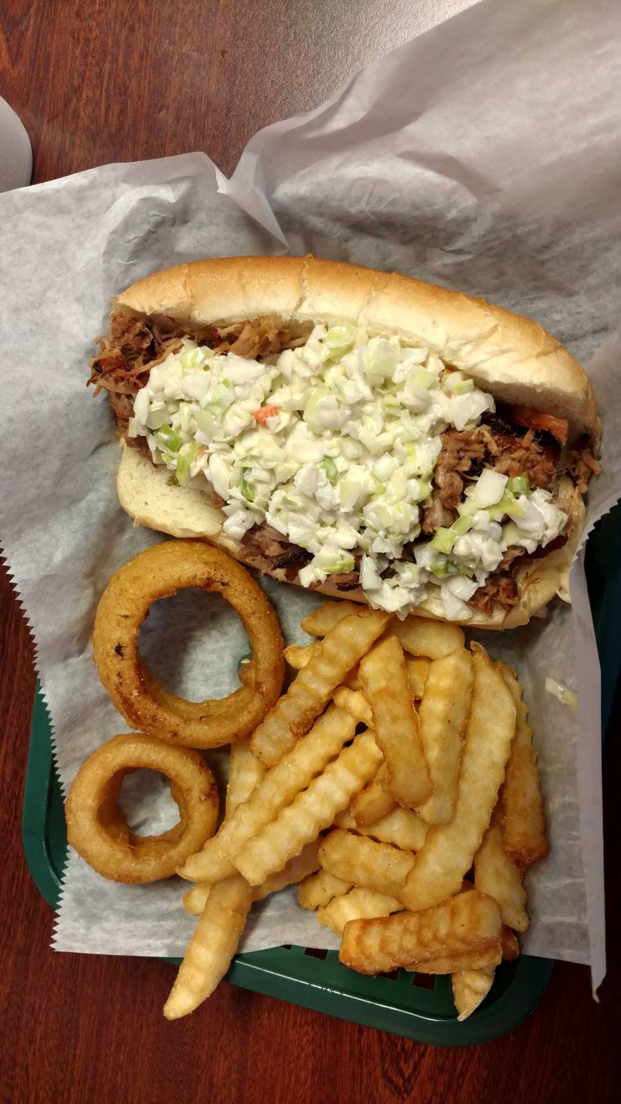 We had falling off the bone ribs, delicious lemon pepper wings and pulled pork. The Sissy, Sassy, Sweet, Spicy...sauces are so good!!
