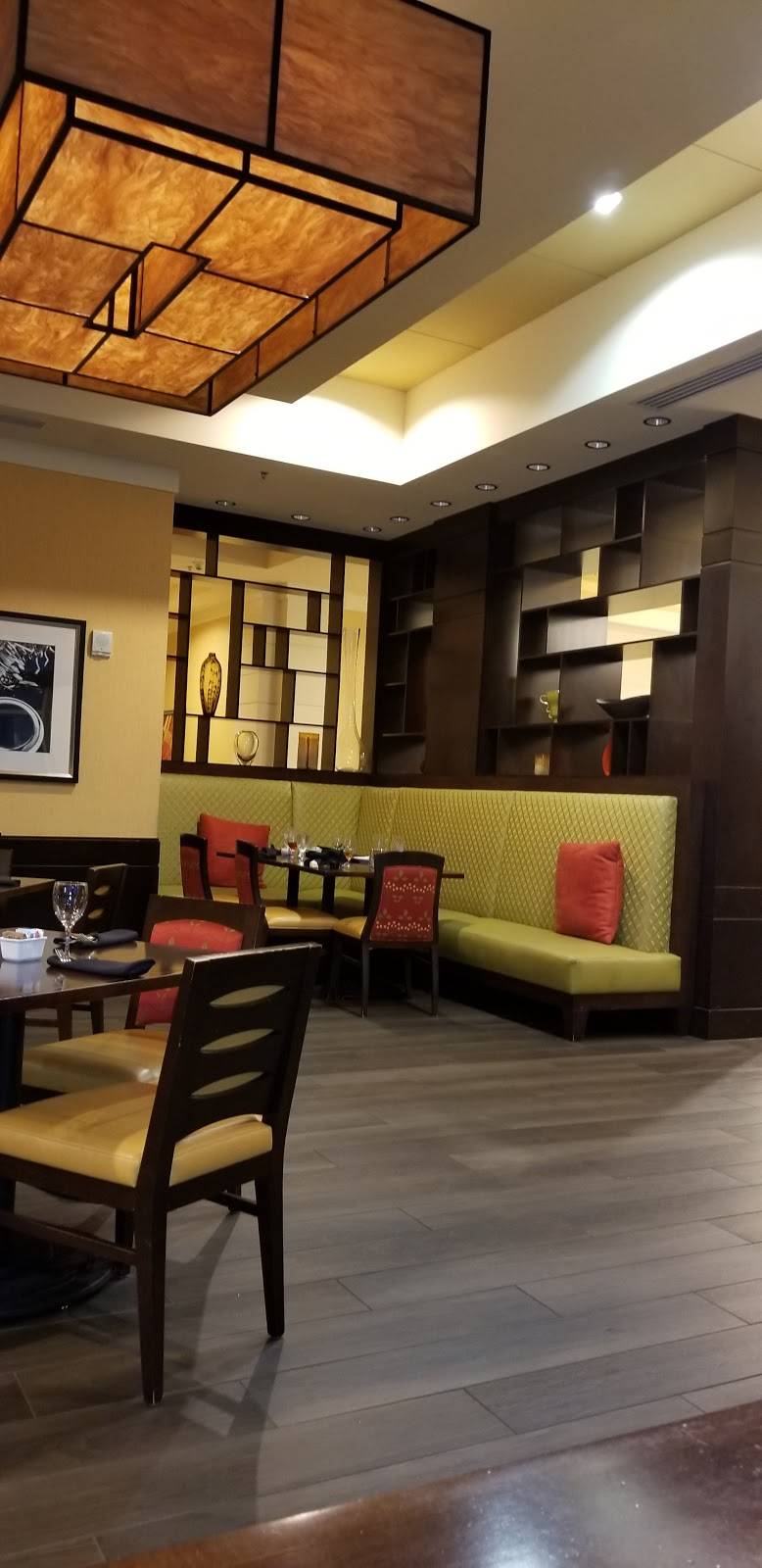 Great place for a couple of cocktails with the girls. Awesome fried green tomato sandwiches for lunch, and the rigatoni is so yummy. Good date spot, and a great place to meet up with your girlfriends. Not many people know it's open. Inside Marriott hotel, through lobby and there you are! Check it out!