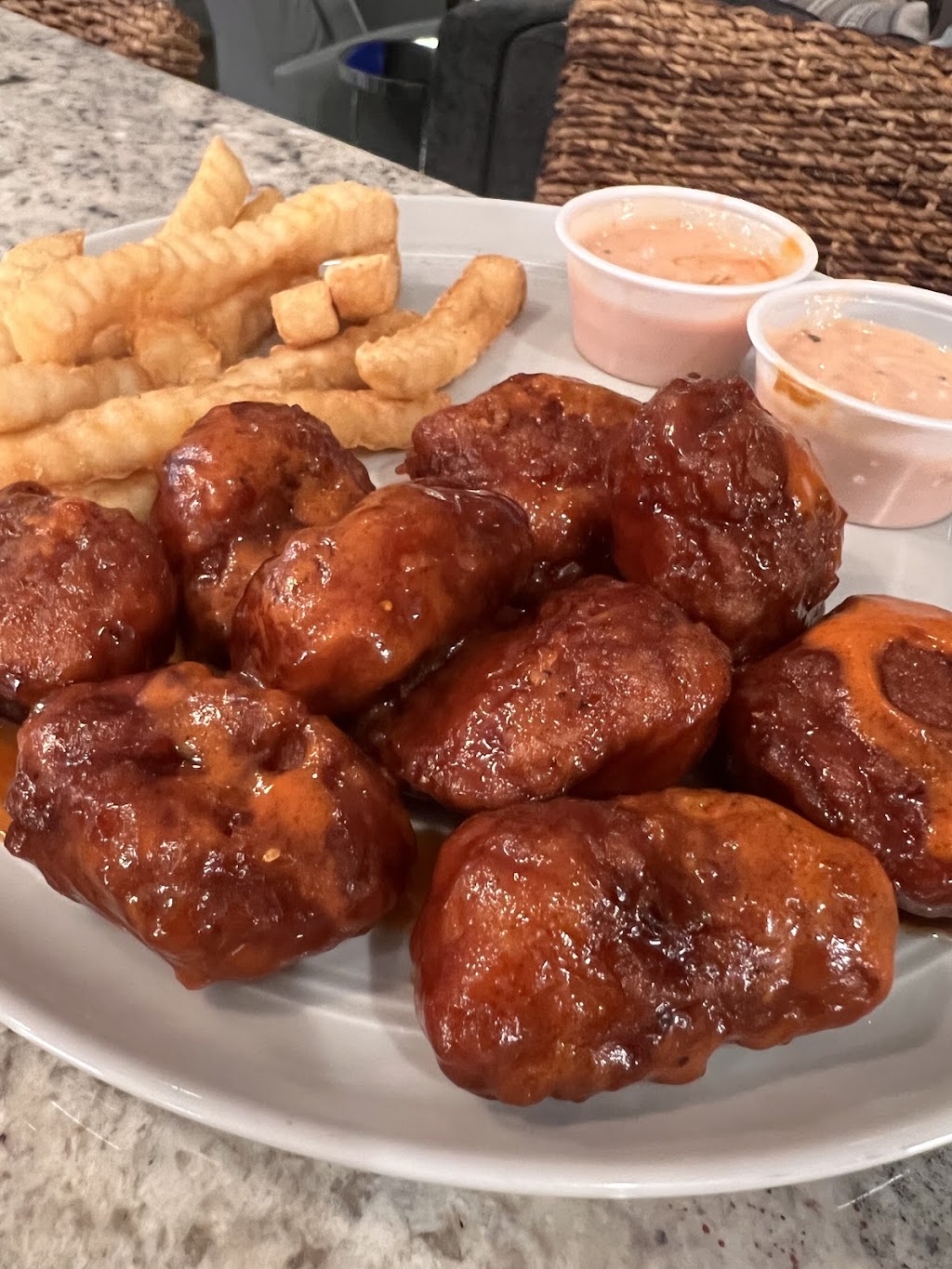 Usually a bone-in kinda guy but just wanted to use a fork tonight, the boneless here are excellent! Super crispy on the outside but still moist and juicy on the inside. I took the owner’s recommendation and got them tossed in teriyaki and medium sauce with a side of wing maxx sauce for dipping. Food and service 5 stars all the way around!