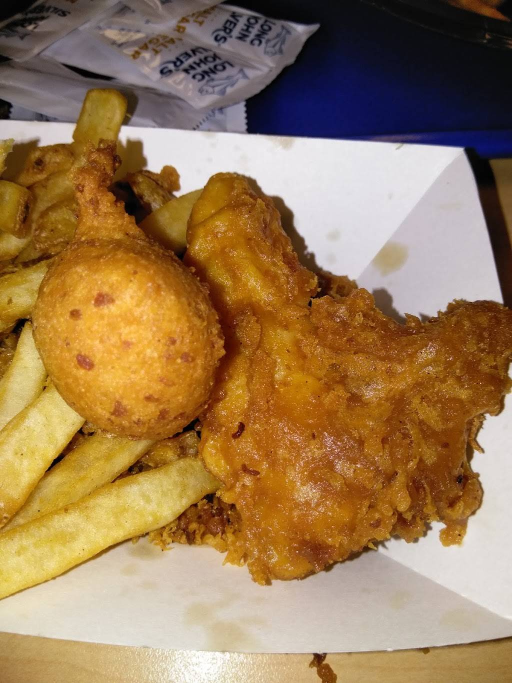 Love love love their chicken popcorn shrimp and hushpuppies never had an issue my order has always been right and hot and very tasty