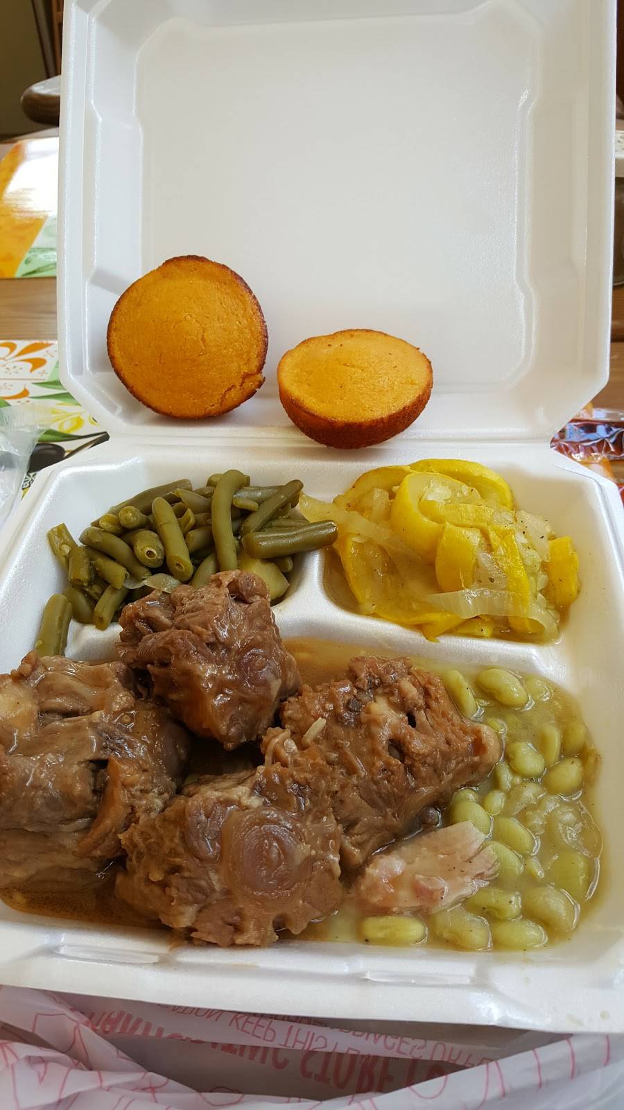 Coming from South Florida where soul food is a commodity, I was super excited about trying this place after reading the reviews. Unfortunately, I was underwhelmed. The oxtails and cabbage were excellent; however, the greens had too much vinegar in them, the mac and cheese tasted very acidic as well, and the summer squash was unexpectedly fragrant (no sure why). The sour cream pound cake was good but quite dense. Might try someplace downtown when I'm in town next time.