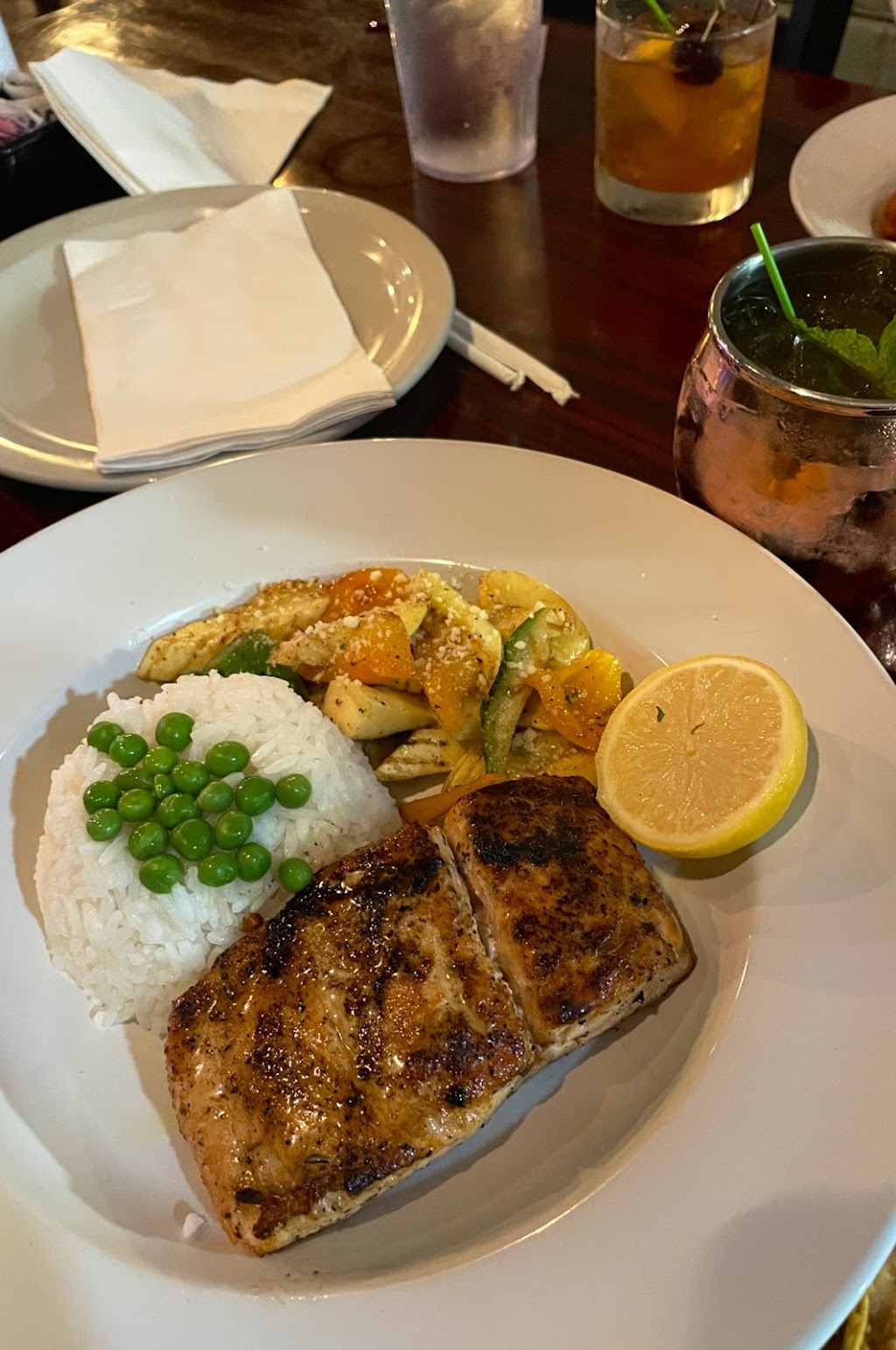 The vegetable fried rice looked delicious, but it tasted average. The lamb was different, but it was very good. The pineapple martini was great! The restaurant was very clean. I will go back again.