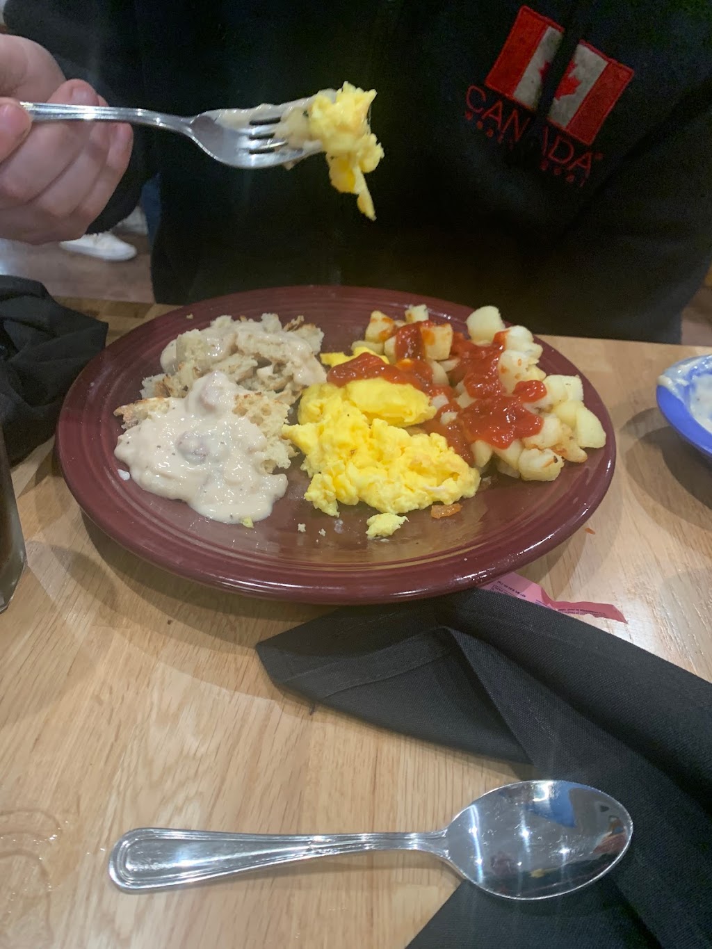 About 10 this Saturday morning, i visited an old favorite, now open in Canton. The restaurant looks great and it was busy during my time there. Service was excellent, the person who delivered my meal spilled the bacon on the table. Before I could even react, she swept it away and another person brought 3 pieces of bacon to replace the two I was due. My goto selection was always Pantry Feast with eggs, french toast, bacon and fruit. Perfect. I will be back again.