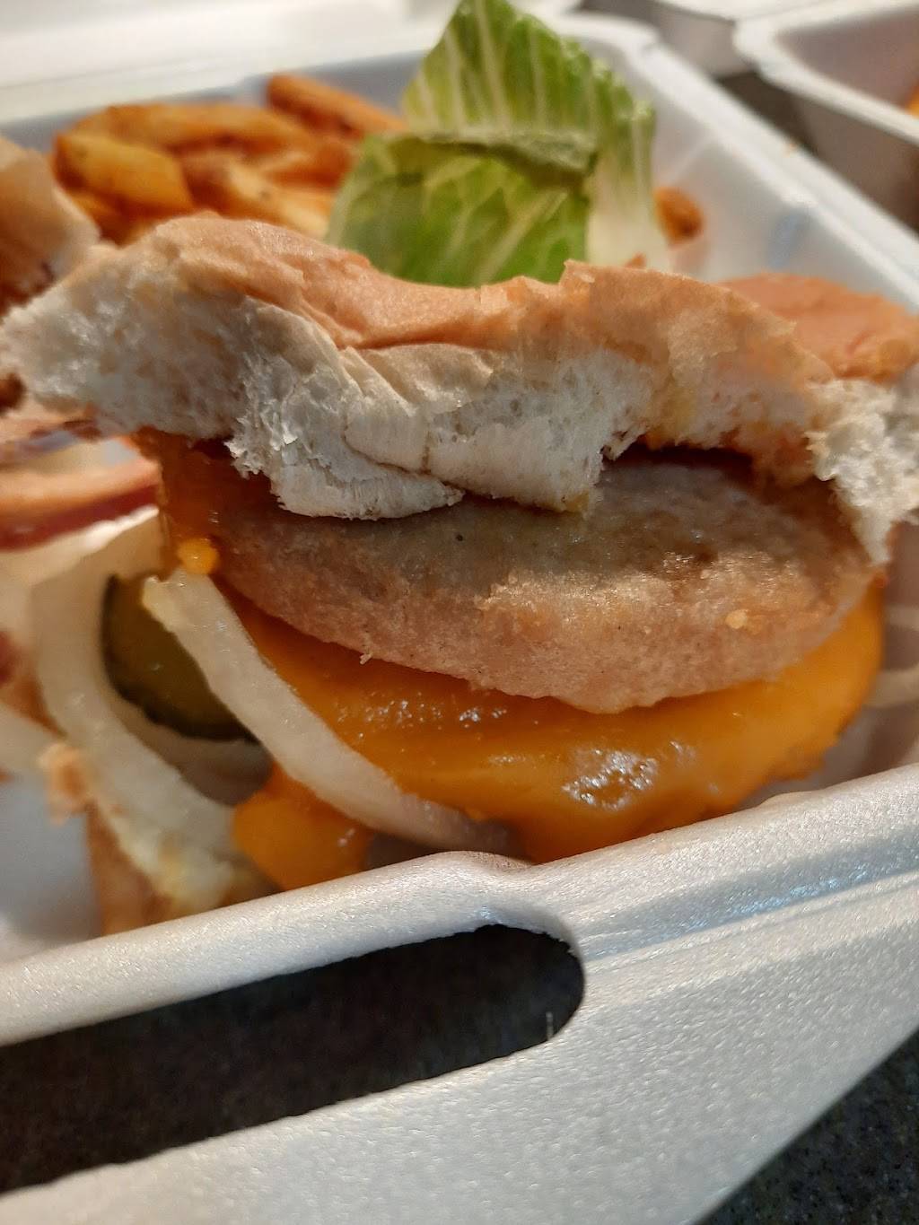 Vegan and juice bar has a cafe' that serves strictly vegan food! We tried the bacon cheese burger and the chicken sandwich. Both were really tasty and were each served with fries. Daily specials are hot meals. Brunch all day Saturday. Good job, Sonya! We will definitely be back!