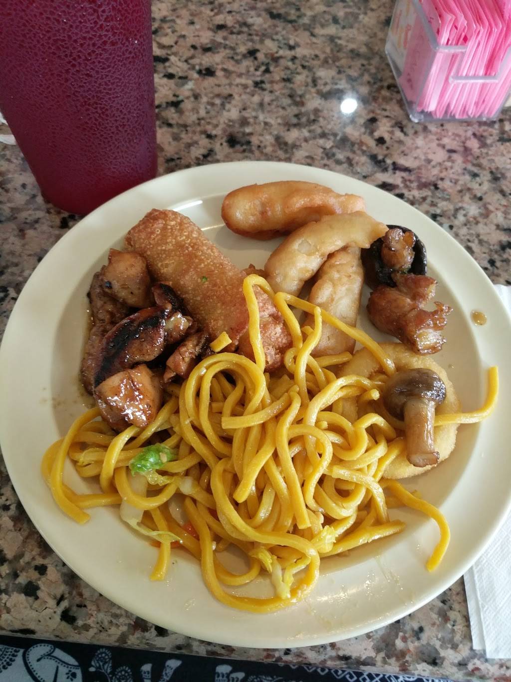 The food is decent Chinese buffet fair. There was a variety of food, some typical to Chinese food restaurants, some more close to Southern food. When we went there were flies about, some dangerously close to the food, which is why I dropped a star from 4. However, it was a very cheap but bountiful meal, and one server in particular was really sweet and friendly (Linda or Ninda it sounded like, tip her well! She deserves it! ).