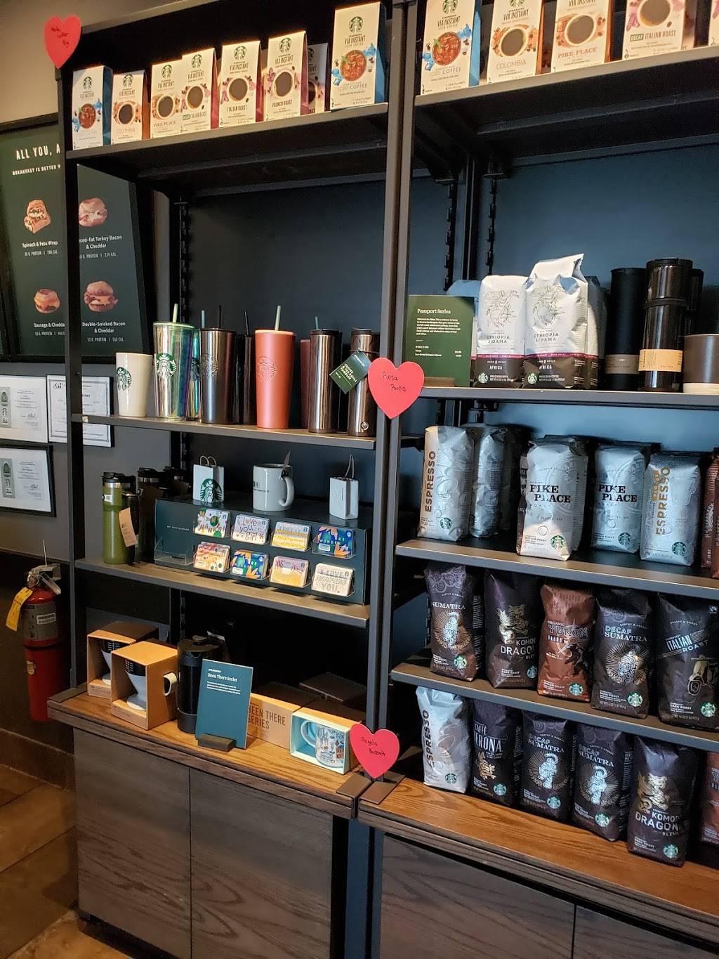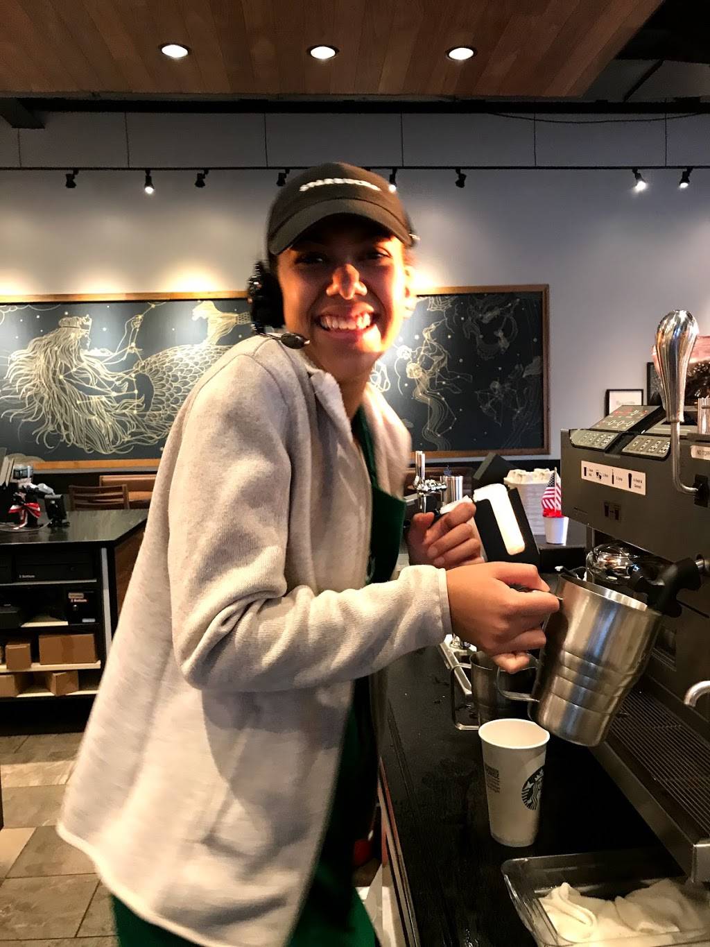Friendly staff with efficient service! My beverages are always made perfectly and delicious! I love there breakfast items the turkey pesto sandwich is yummy with an iced latte! There seasonal treats are a favorite of mine and they always have the cutest cake pop designs!