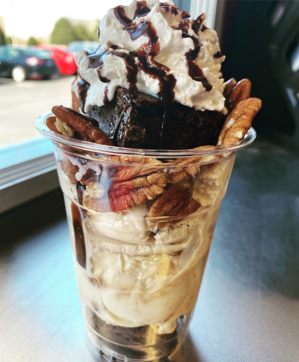 Talk about a food coma! I had the banana cream cheesecake/ ice cream pie with a piece of homemade cinnamon roll. The combination is deliciously evil and my waistline now hates me. The entire pie is $27 and more than enough for 6-8 people given how thick it is. The owners are amazing and extremely personable. I highly recommend this place over any other ice cream place in Augusta.
