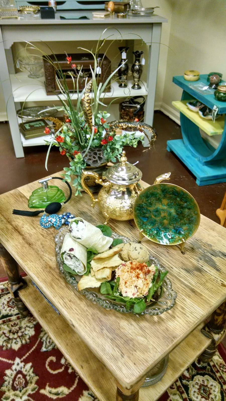 Wonderful shop. Most welcoming people. Nice place to browse for treasures and lovely silk flower arrangements. Homemade lunch available. Delicious chicken salad.