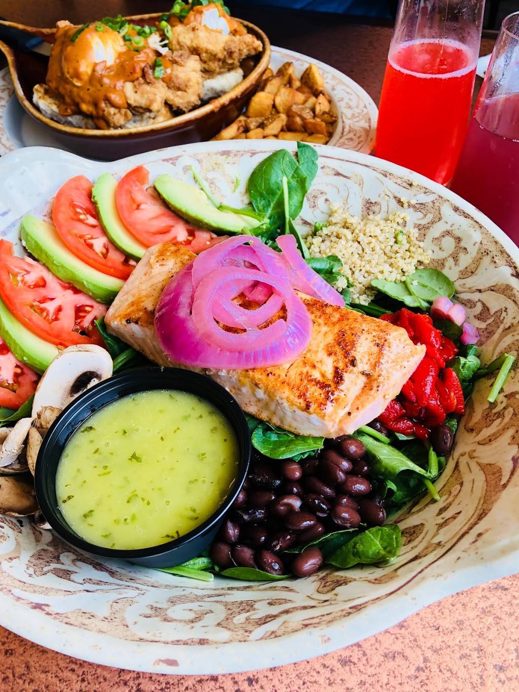 A modern southern restaurant with a fresh take on breakfast classics. I had the limited edition carrot cake pancakes. Yum! They are crispy on the outside & tender inside with raisins & nuts. Their homemade sausage is SO flavorful. A must try. And my cousin loved her crabcake Benedict. Downsides: pancake flight is just plain pancakes with a little topping inside & out. Also, chicken & waffles are bland. Overall the place is pretty great. I'd definitely go back to try more!