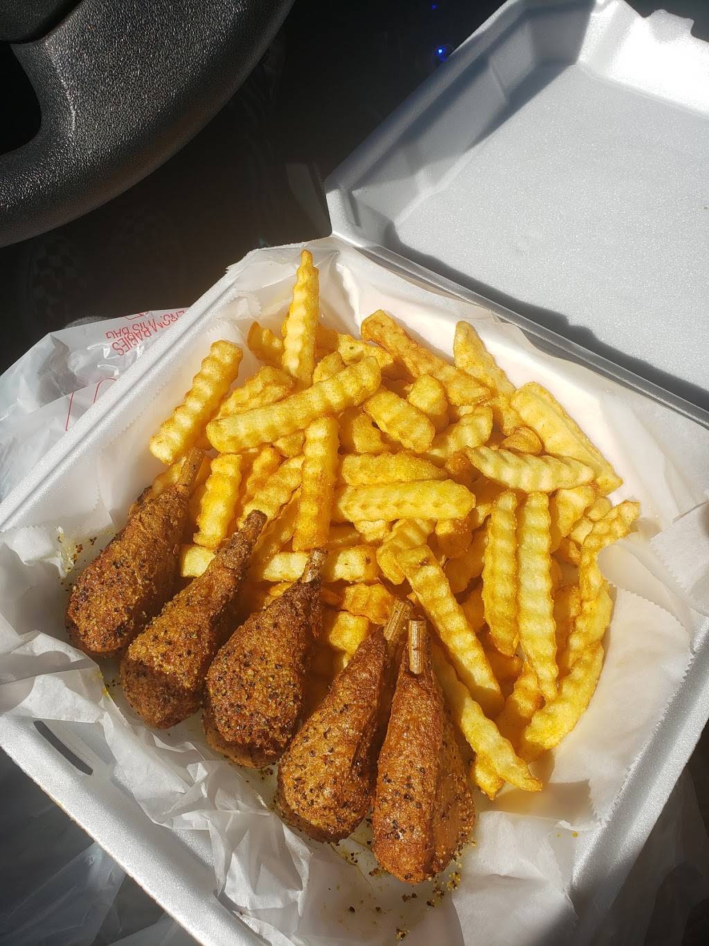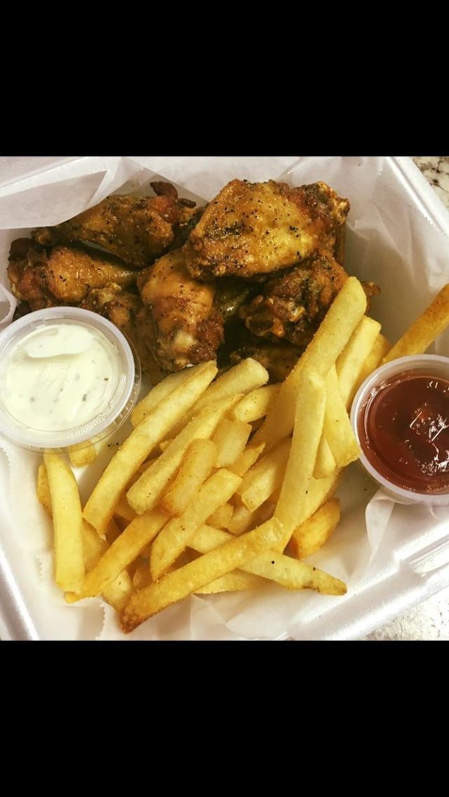 I had the Vings combo (fries & drink included) and chose the lemon pepper & honey. It was delicious. Compliments to the chef as well(I didn't get her name). Fast service, dining options are very limited (5-10 people); however, I'd highly recommend this place to eat.