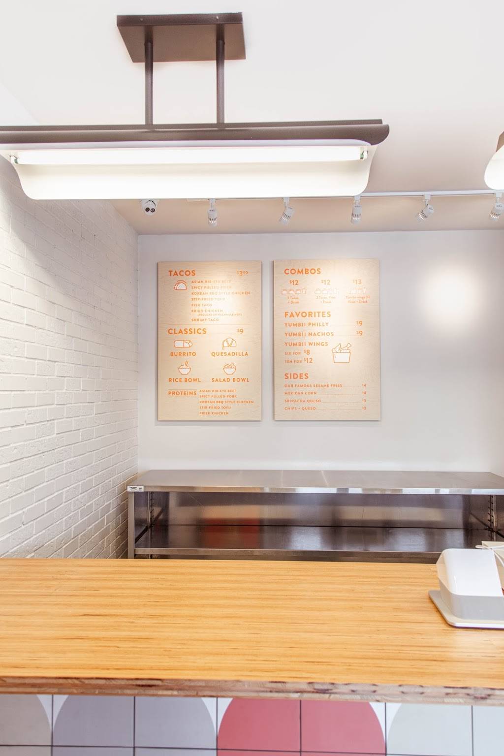 First time at Yumbii and the food, customer service, and atmosphere was very nice!! I ate all my food too fast to get a picture, but I did the 2 taco combo with fries and a drink and it was more than enough. The Asian Rib Eye Beef and Shrimp Taco were seasoned perfectly! Cant wait to come back when they start serving margaritas.