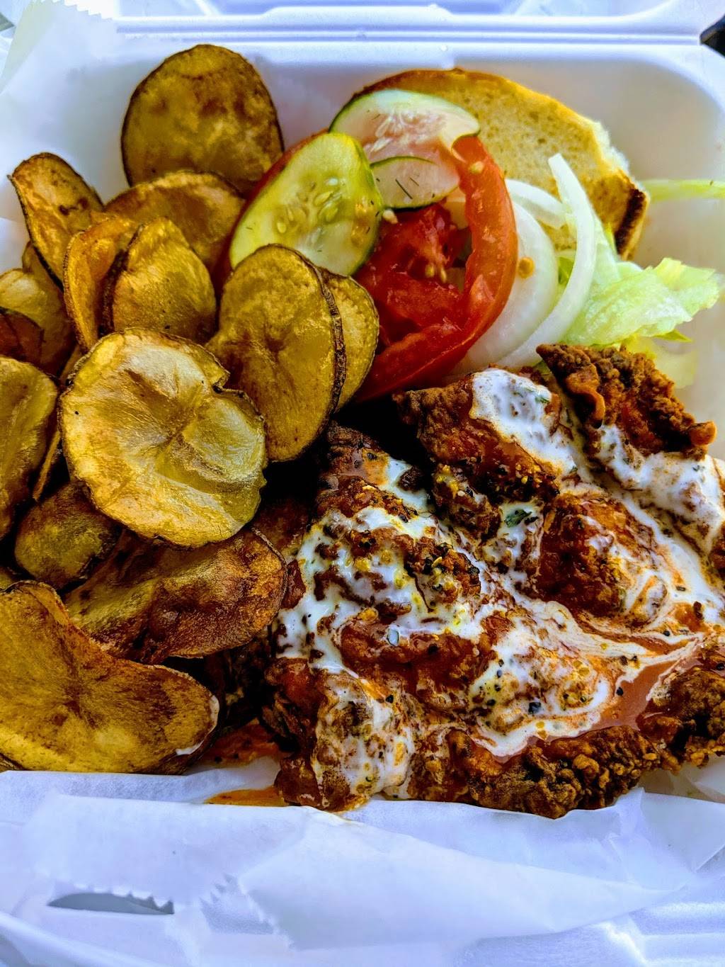 Crispy and delicious! I ordered the ATL Chick. The buffalo sauce was pretty mild, not overpowering at all but I wouldnt mind a little more kick. A lot of people we're ordering the fries but don't miss out on those chips! They're free with every sandwich and amazing!