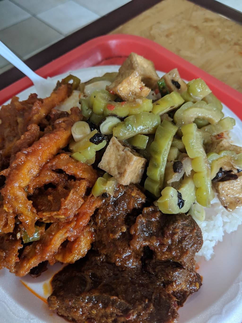 Had the chicken gizzards with orange sauce, the beef, and the meat with lots of spicy peppers. I dont enjoy things bieng too spicy, yet this was perfectly balanced for me despite getting the spicy peppers and meat. Everything blended well together and the rice. Ready to eat and great flavor. Good portions for the price and quality of the meal. Love the personal feel of getting authentic food from a place you can tell knows their stuff.