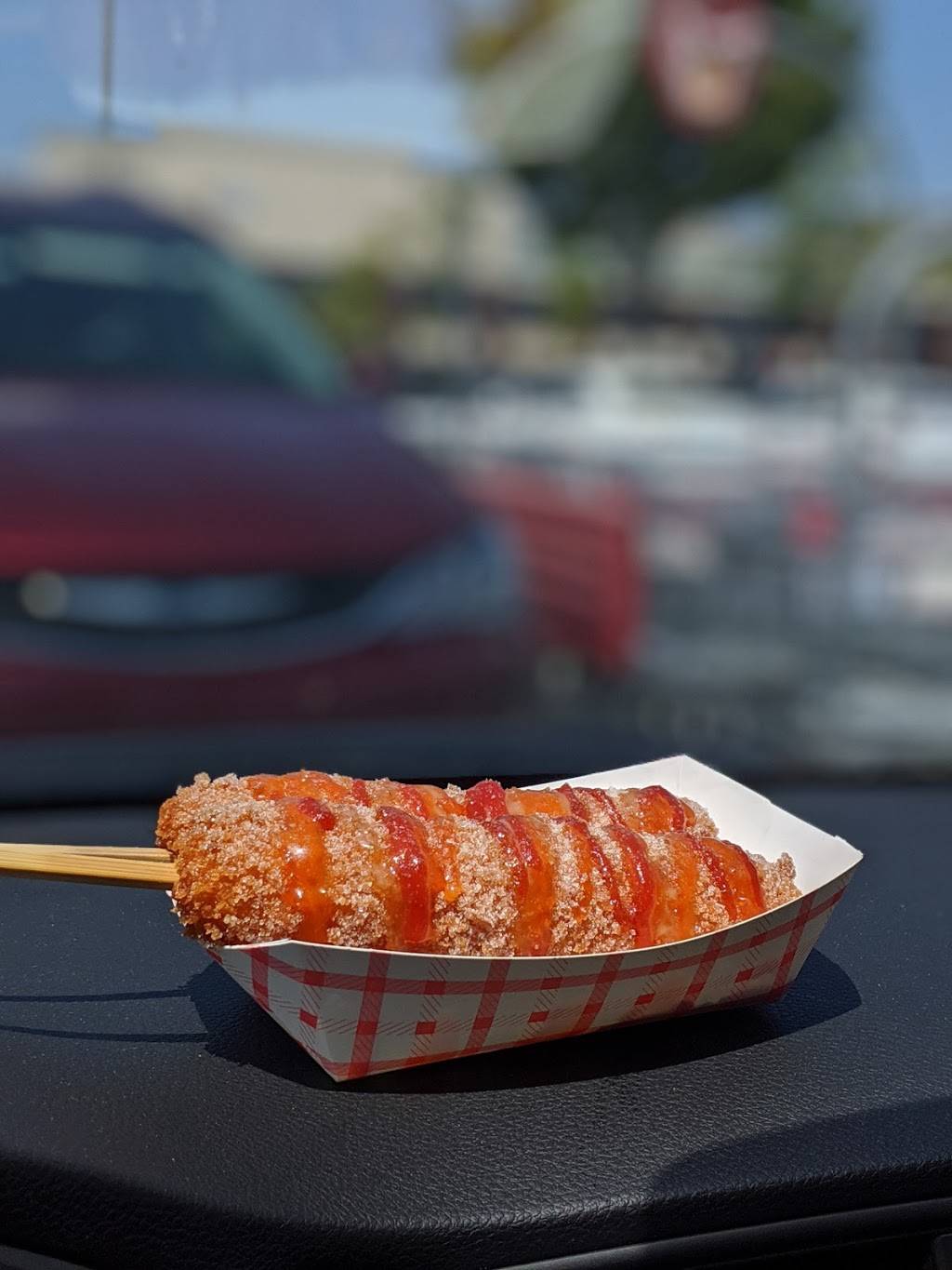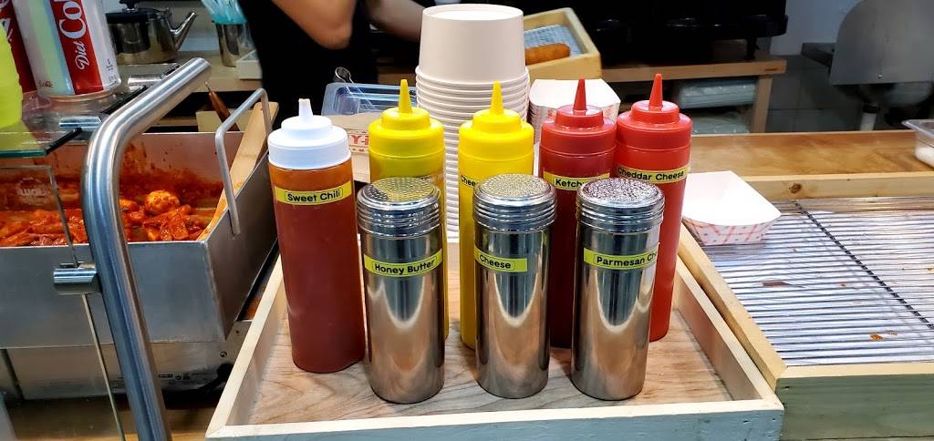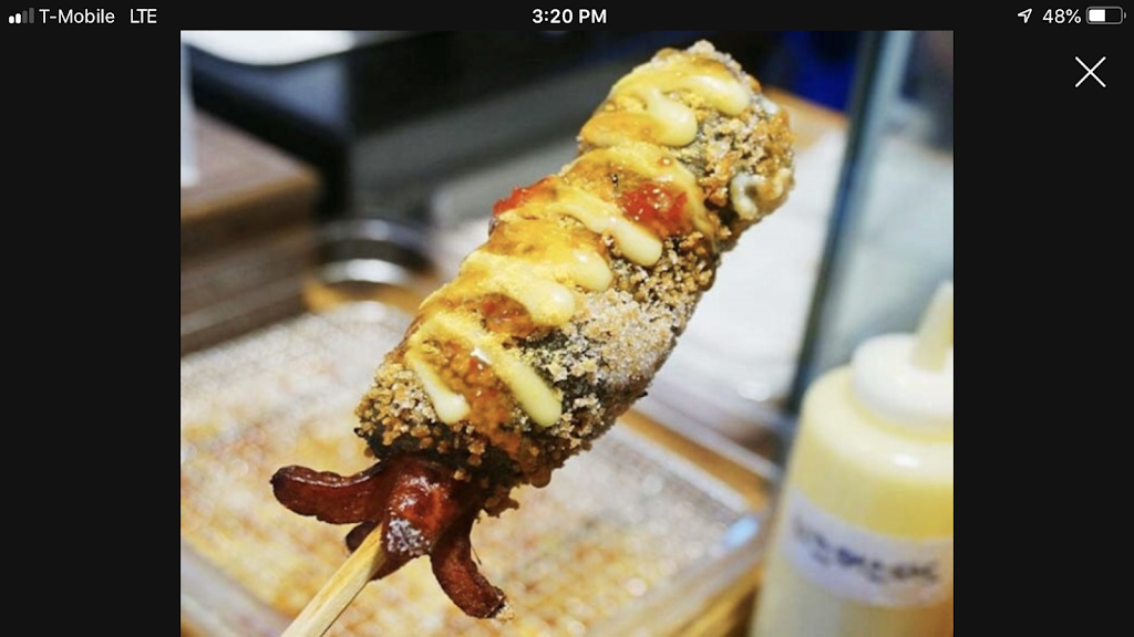 This is such a unique experience. Honestly, I didnt like the corn dog myself but that doesnt mean it isnt a great experience. The corn dogs are dipped in a sweet batter covered in panko breading making it extra crispy and they come in a variety of flavors including: cheese and sausage (cheese on top and sausage on bottom), rice cake stuffed, cheese stuffed, and one with squid ink in the batter. The staff was extremely helpful and patient and made up my cheese and sausage dog proper Korean style i.e. covered in sugar, ketchup, and cheese mustard. I didnt like it but that doesnt mean it isnt a good product or a fun experience it just wasnt geared to my tastes (too sweet and tasted like a funnel cake but I know people who would love that). Next time, I try it will have it with out the sugar but it was great fun trying it. They also have a very nice frozen lemonade.
