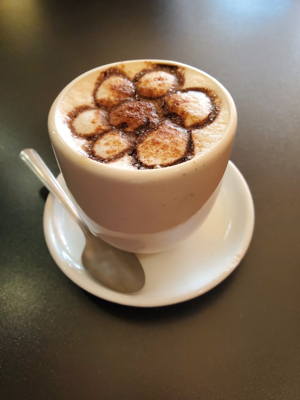 First time eating here. I got the pechuga a la plancha which was delicious (seasoned grilled chicken breast with rice, blended beans, salad and tortillas). It was too late to take a picture, I was already half way done. The cappuccino was really good and it was a decent size.