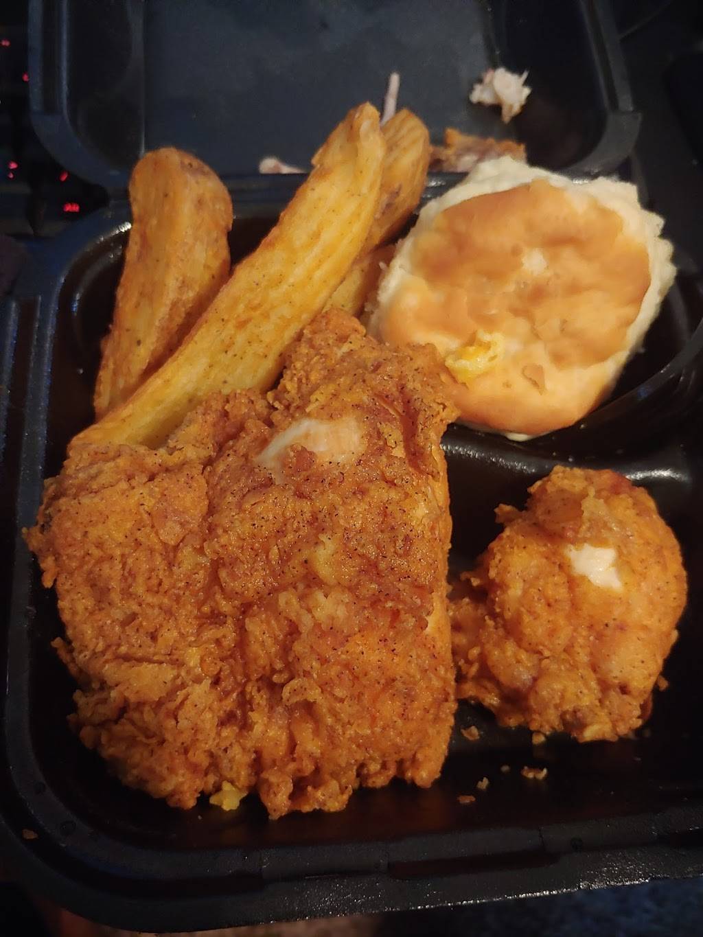 Great chicken. Very friendly staff. Biscuits and collards really good as well. Chicken tenders are my favorite so far. Can’t beat it for the price. Highly recommend.