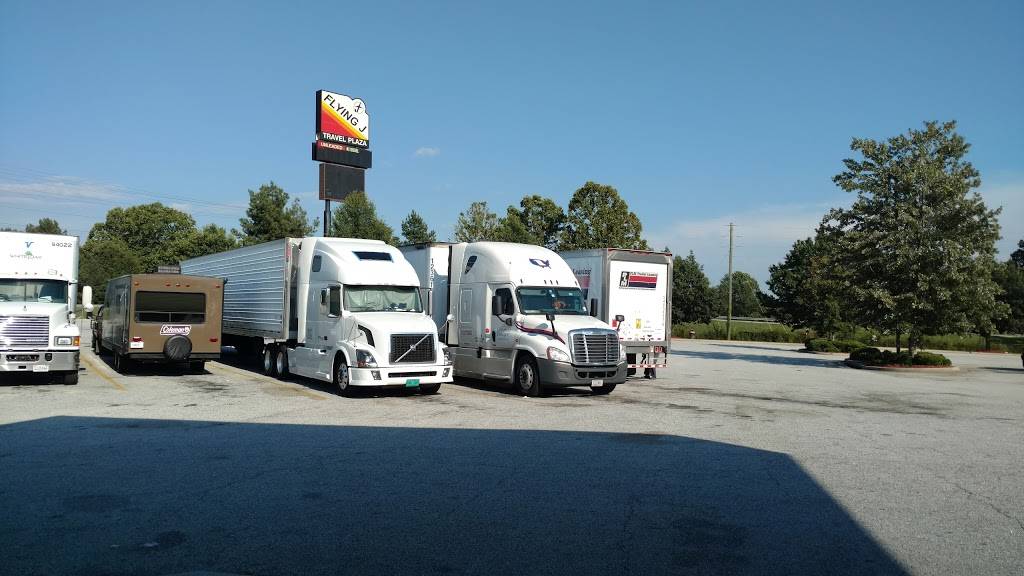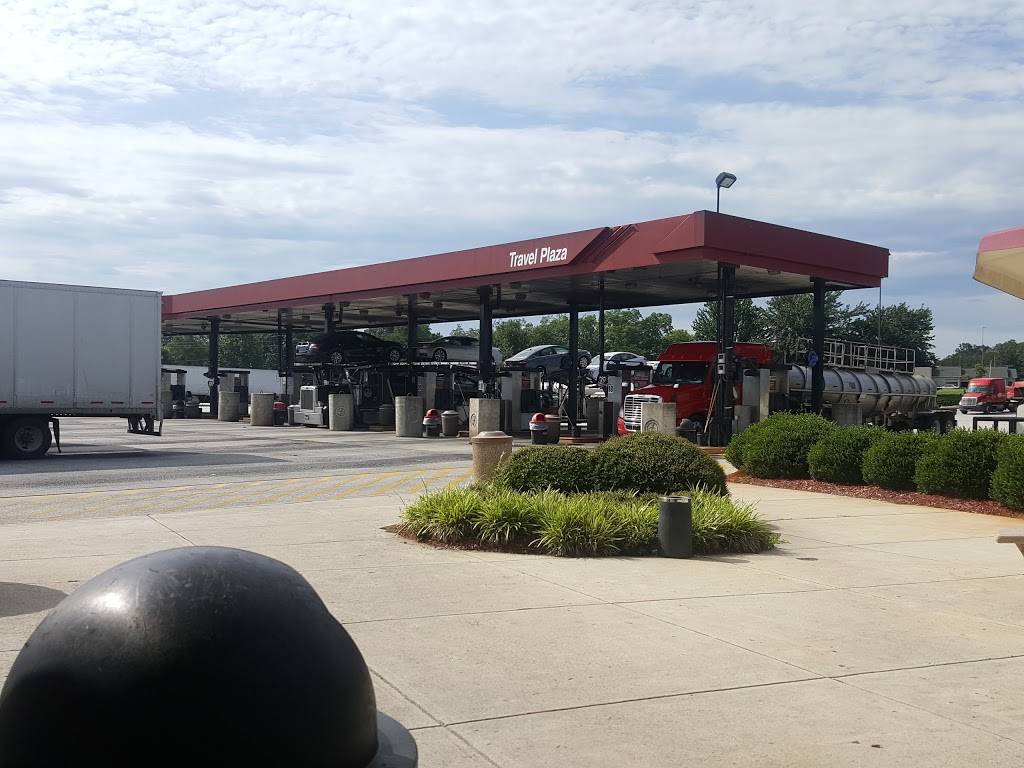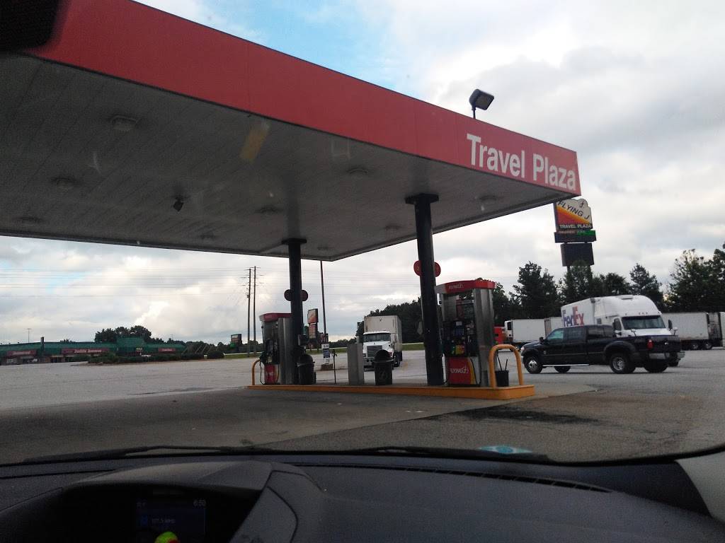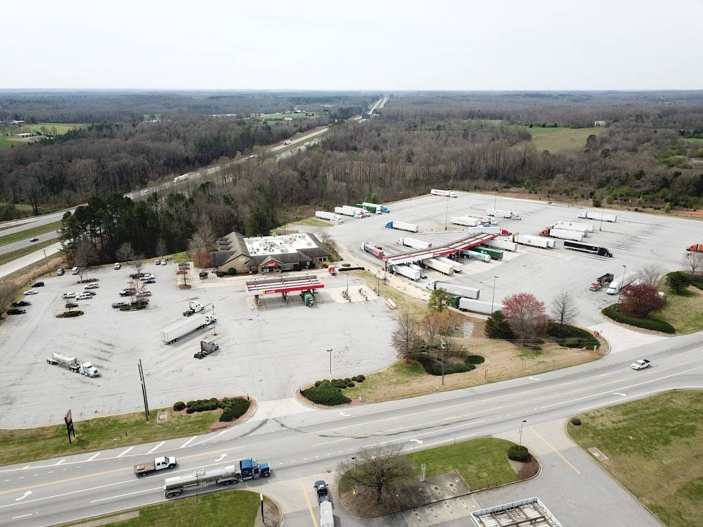 This is typical flying j. Travel center. It is highly visible from the I-85. It has sufficient parking area for automobile, tractor trailers, and RVs. It also has separate fueling bays for the vehicles mention above. It has shower rooms for travelers. It has both hotly prepare food, cold sandwiches, and salads. It also has fountain drinks, coffees, and cold drinks. If you are tractor trailer driver, call ahead after 7pm or download their app for live parking and all other amenities. Good luck