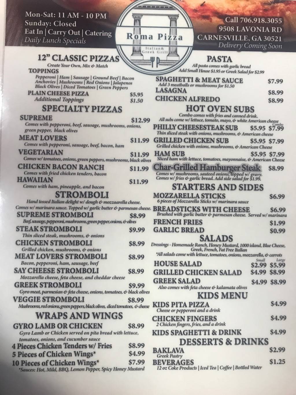 The food here is amazing. Very clean restaurant. The employees make you feel like family. The Pizza & Stromboli’s are excellent! The salads are a work of art and I love the fact that the ranch dressing is made fresh daily. Roma Pizza is a must to try!