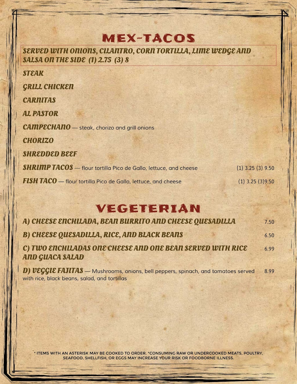 The food is delicious and the servers are extremely friendly. I love the Mex-Tacos. But everything that others have had looked great and was given good reviews. I love it!