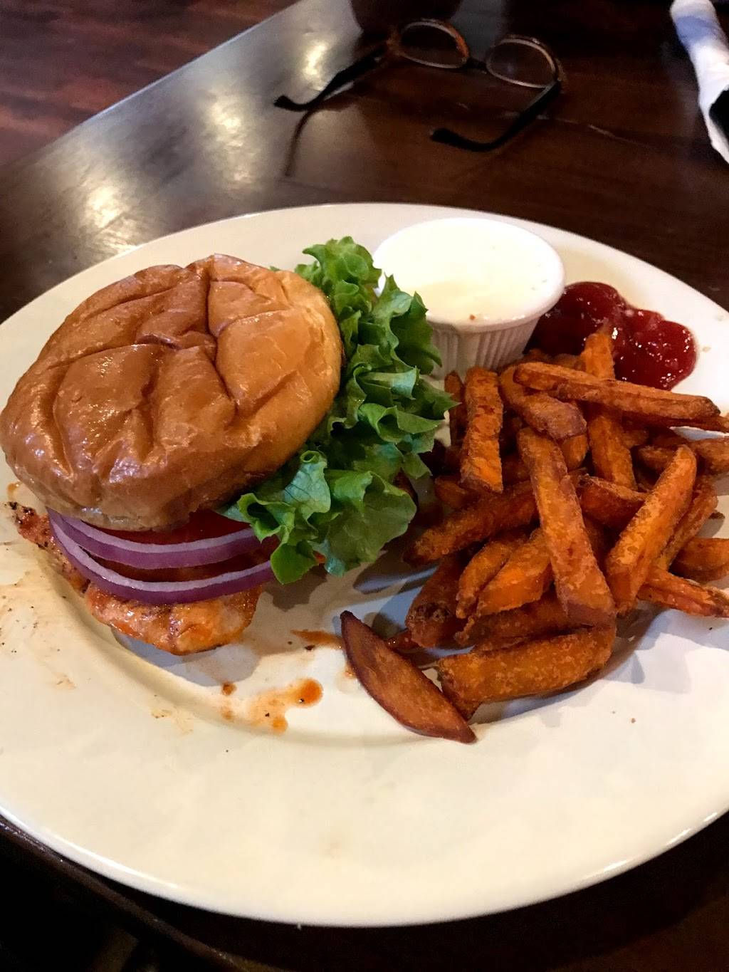 Great food and service. A bit like Cheers atmosphere, "where everybody knows your name"! Angus burger excellent as are their fish tacos, grilled or fried shrimp platter; shrimp and grits very rich. Love their sweet potato fries. Great salads, and can add grilled salmon too!