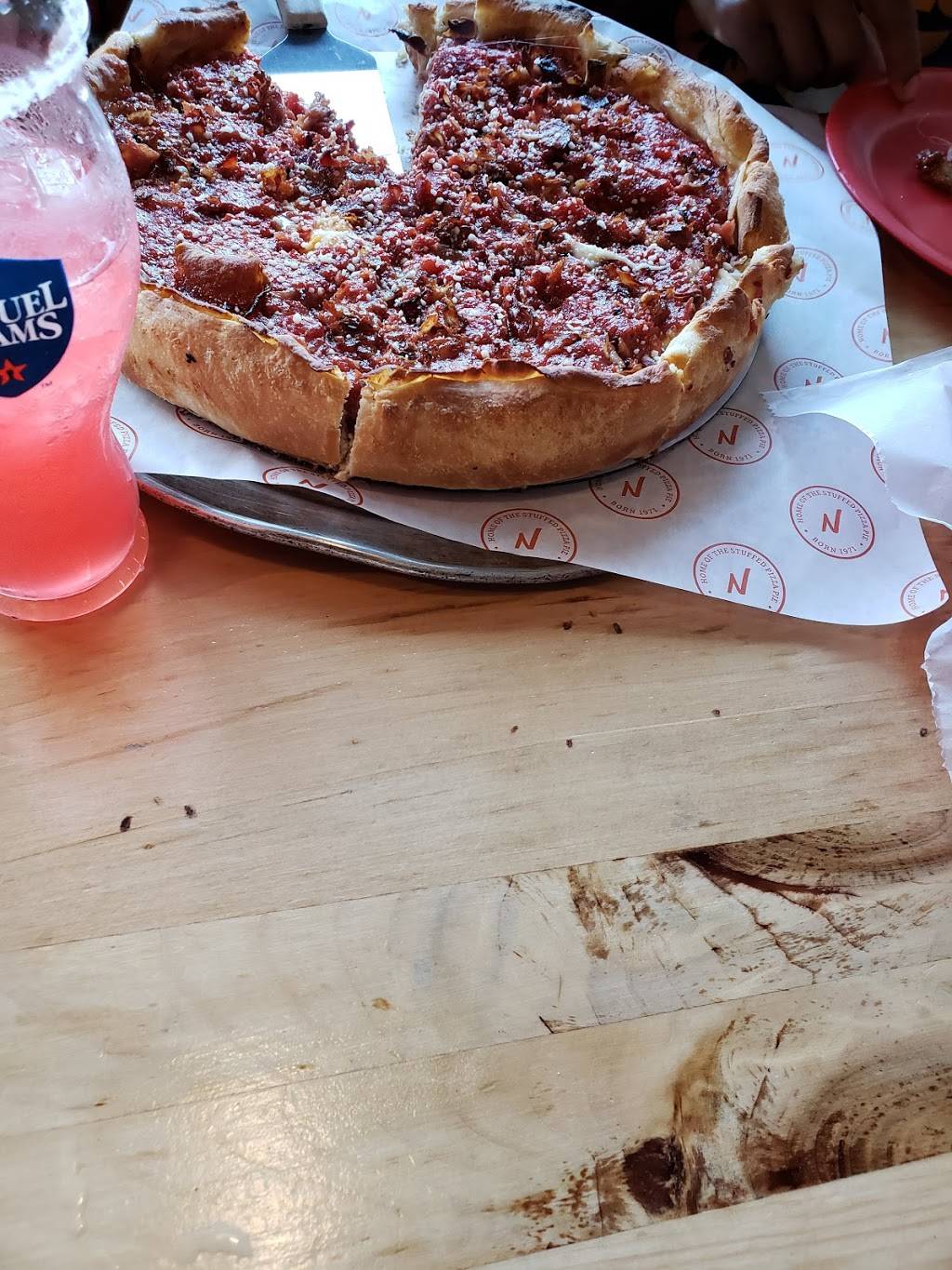 Excellent Chicago Pizza!!! Lots of cheese! Dough cooked well, even in center! Sauce very good! What a meal, very filling!???????????? Impressive Staff were very attentive and fun to talk with. Watched staff work in unison clearing a large party of 5 pulled-together tables. Very thorough: clearing, cleaning tabletops/sweeping, wiping floor/arranging, cleaning chairs. Attention to details!