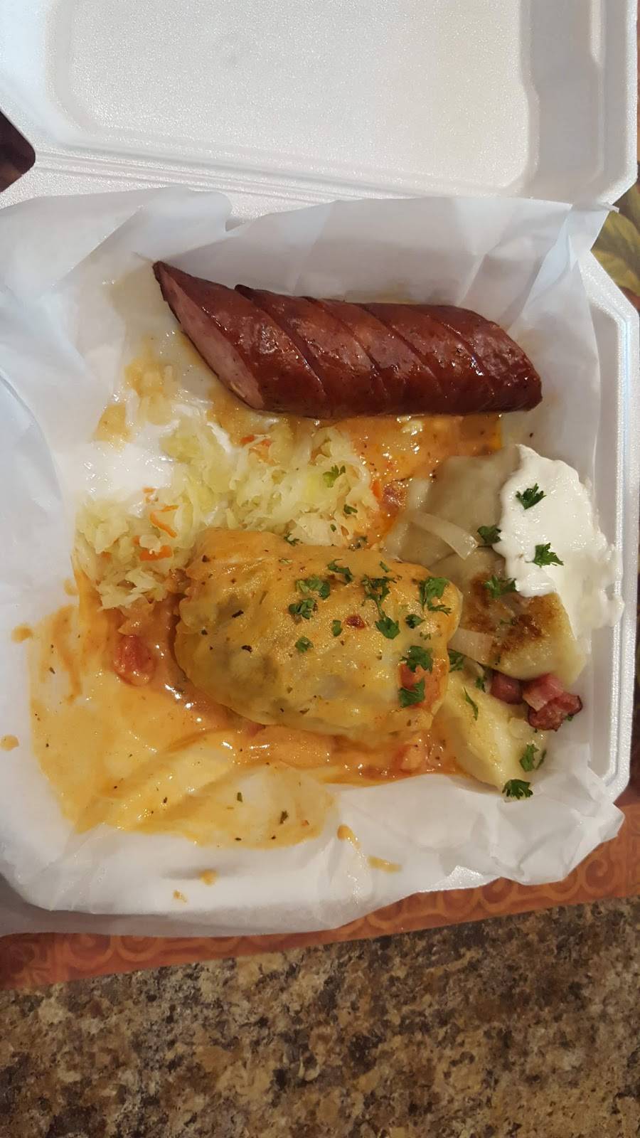 My daughter and I stopped for lunch. Had pierogies, pickle soup was to die for and cucumber salad. Really really good food!