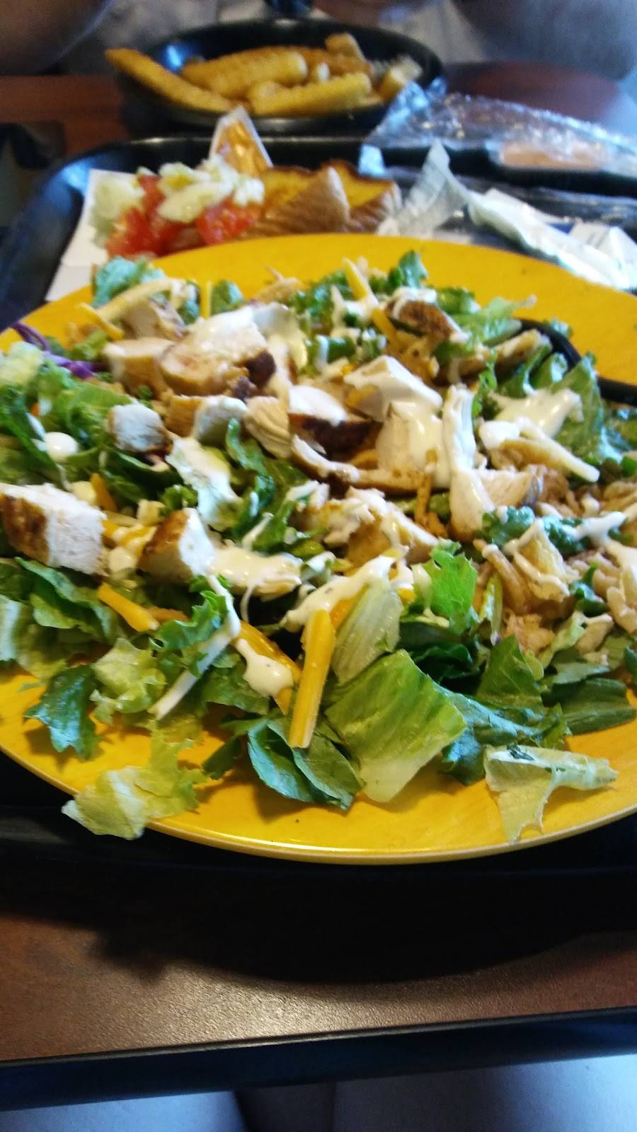 Fried chicken salad with honey mustard dressing! Have to get extra dressing but worth it. If they have the free style drink mixer... get Vanilla Coke!! Always can eat the fried mozzarella cheese bits and a nibblers meal too!