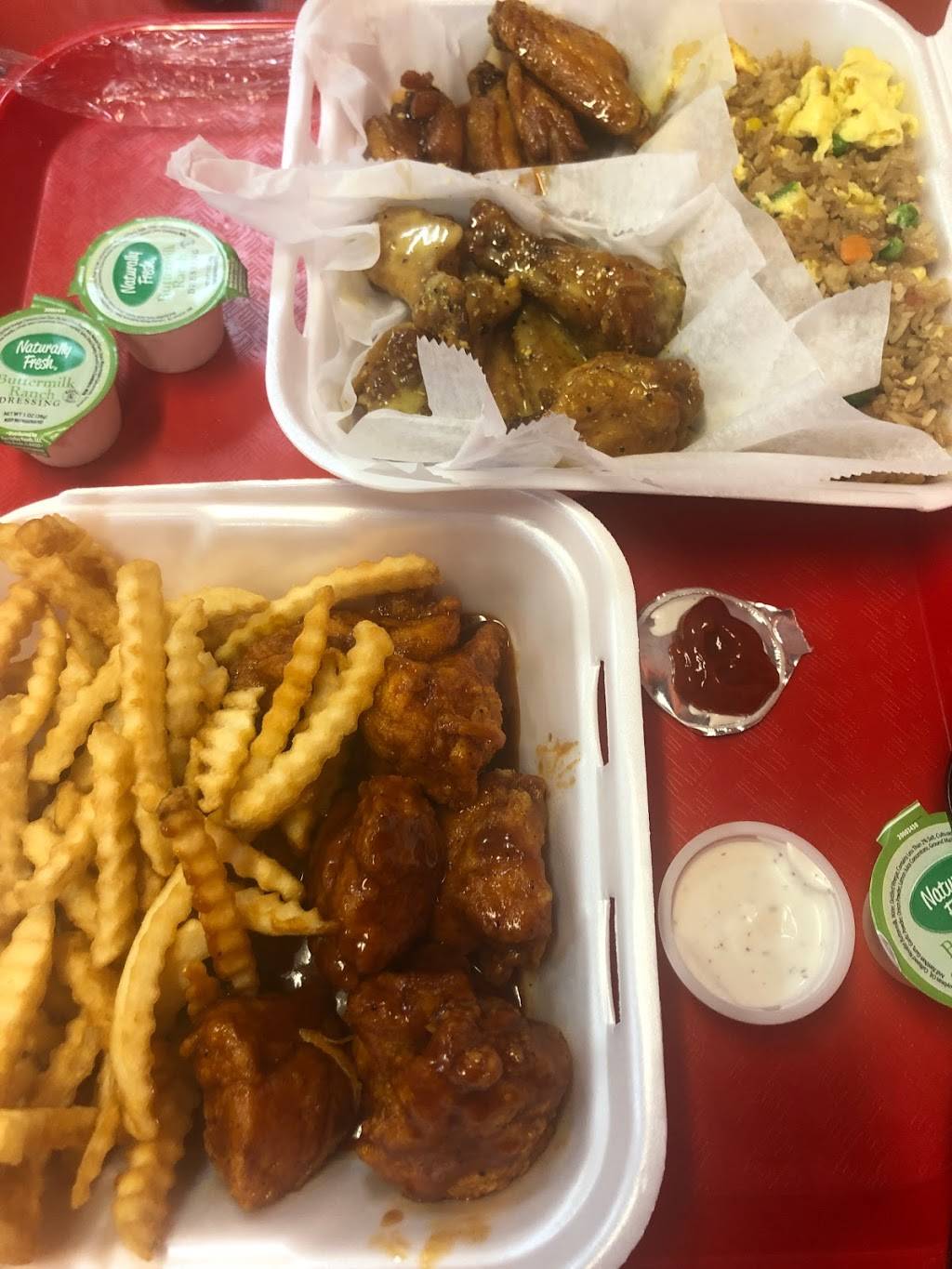 I like to think I'm a hot wings connoisseur! The wings here are just ok! Nice small size not huge! Decent location & customer service however they're stingee...w/the fries. Combo $11. They don't even give you celery