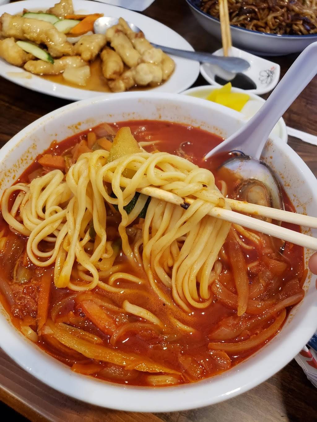 By far hands down the best korean-chinese(KC) food in Georgia. We have the shrimp combo with jjajjangmyun and jjamppong. Tasted great and the portion was big enough for average person. We just got back from korea and wanted some good KC food. Also, if you like a little bit of spice, try the mapotofu.. by far one of the best I've had in Georgia. The other is at NamDaeMoon market on Steve Reynolds and club drive. The service was as good as the places in Korea. But each table has a bell so if you need anything you just ring.. our bill total came out 40.. usually costs about 60 to fill me and my family up.. great food and big portions.