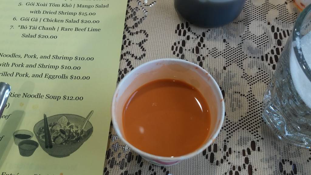 Even though it's new, the space offers distanced seating in a well lit, cozy environment. This place serves Vietnamese food and drinks. I came in the evening and was able to sit and study for my finals without any issues. The staff are very friendly and welcoming. They also do pickup orders I believe.