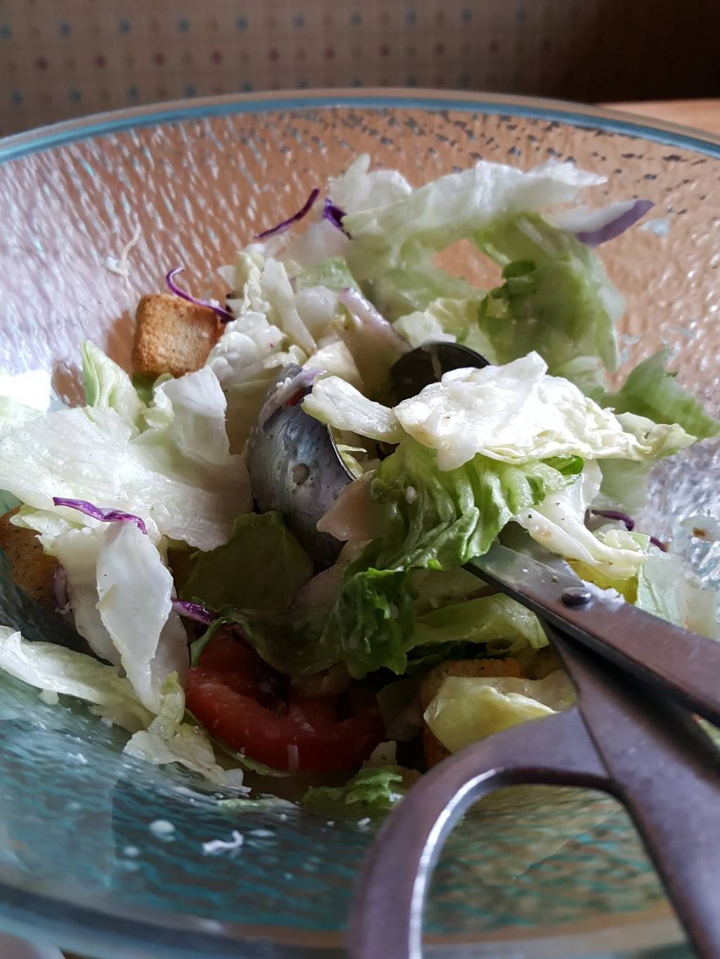We had to wait 20+ minutes after being seated before a waiter even addressed us. It was as if we had been forgotten by the restaurant staff. We almost considered leaving before we were finally able to flag down a waiter. Thankfully, he was very apologetic and served us extremely quickly to make up for the wait. The food was pretty great (I got the eggplant parmigiana with spaghetti) and my blackberry-pineapple tea was frankly delectable. Overall, the food was on par with other Olive Garden locations. But that wait, though... If you eat here, make sure the restaurant doesn't forget about you.