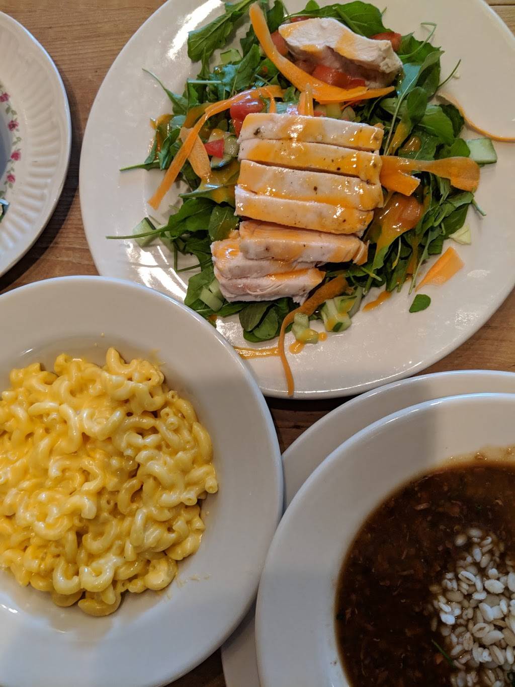 My wife and I loved this place. The food was amazing. My wife had a grilled cheese sandwich and I had a turkey and ham melt. Both were delicious and fresh. In addition, the Turkey bean soup was spicy and perfectly balanced so there weren't too many beans. My wife said the dill tomato soup was a prefect complement to her grilled cheese. They also had various teas in both large and small teapots. I had the small apple cinnamon tea, which was three cups.