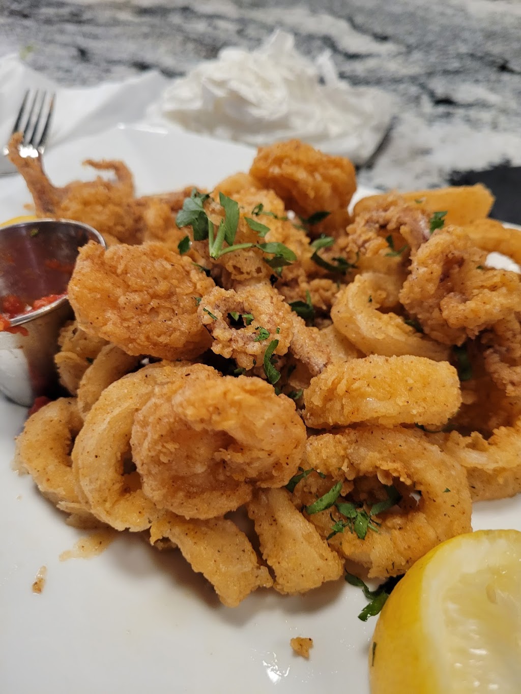 I found the atmosphere upscale and intimate. Food had amazing flavor and waitstaff was very personable. Could use a bit more lighting. I’m not say brighten it up, just make it a bit easier to read the menus. It was pretty darn and had to use cell phone to read the menu. I think this is just was Warner Robins needed. Being from Las Vegas where there are so many food options not just chain restaurants. Fresco should do well. I know as for myself and family we will be returning.
