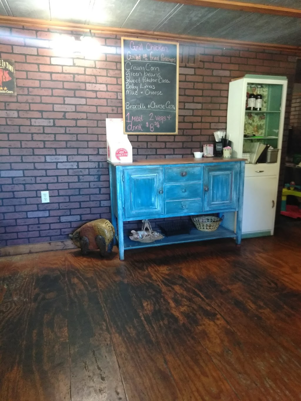 Great freshly cook home meal. Alot of food. Had smoked chicken, fell off the bone and mounds of vegetables. Great service and quick.