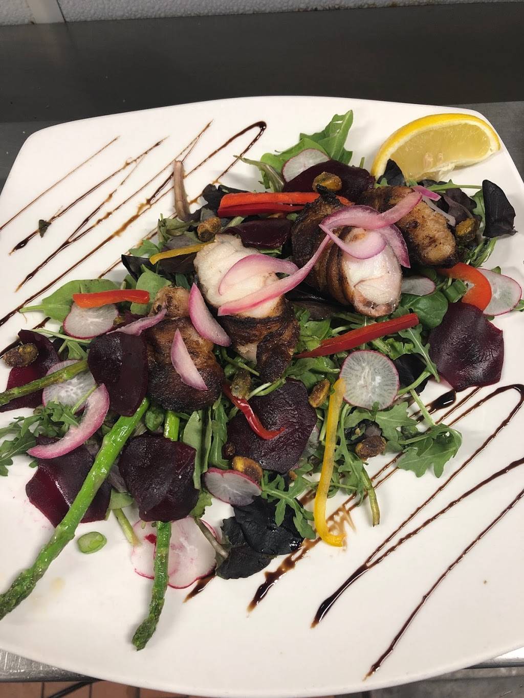 Excellent service, the waters was great at offering recommendations, she was familiar with the menu. they had Veterinarian options. The food was tasty and the cocktails were so good! They have a lovely bar and the vibe of the place is really nice. Friendly and welcoming vibe. Check it out!