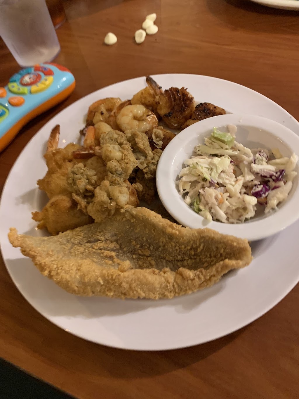 Great atmosphere and amazing food! My wife got the New York Strip and it was a perfect buttery cut through medium rare just like she ordered! I got the seafood platter with oysters, scallops, shrimp and catfish and everything was grilled and fried perfectly! Can’t recommend this place enough as the wife and I plan to make this a monthly place for us!