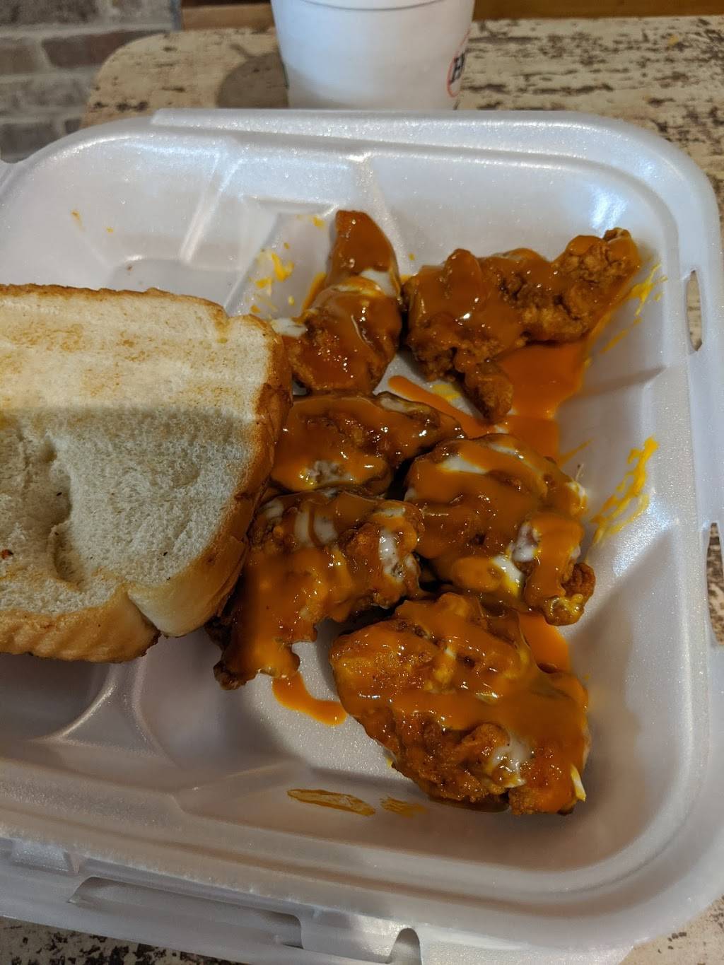 The food here is very good!!! And it was even a surprise to me that they had a drive-thru. The pulled pork was good and the meat on the ribs just fell off the bone. And the sweet potato souffle tasted delicious like my momma made it. The wings were good, but they were a little cold. They may have made a batch earlier of wings, but the wings were still good even though they were a little cold. The baked beans and the macaroni and cheese were also really good. I think this restaurant was created by some BBQ Pit Masters because the food is really too good. The take pride in what they're doing guaranteed.