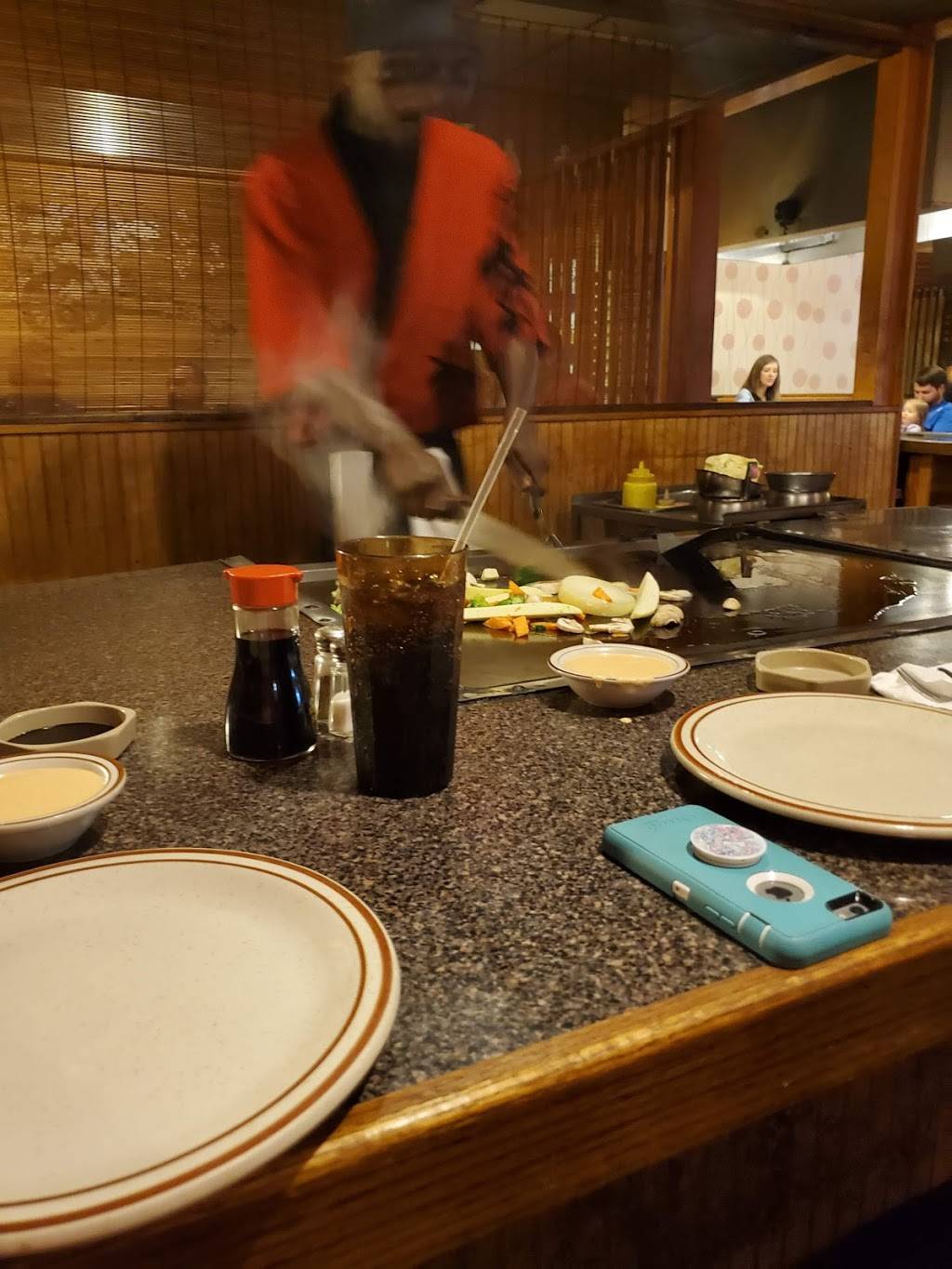 The restaurant is old, but not necessarily in a bad way. There is carpet on the floors and it is pretty worn. The chairs also have fabric seats and mine obviously had something sticky and brown that stained my new pair of jeans I had just paid $100 for. The food was fine but our cook was not very entertaining. He was much older and did not do any "tricks" that you expect at tableside experiences. If you have never had this type of food you may think it is bland without any sauce on it. They do not use seasonings for cooking so it is up to you on spices after cooking. Make sure to tell the cook you are allergic to items so yours gets cooked prior to the other items you have allergies to.