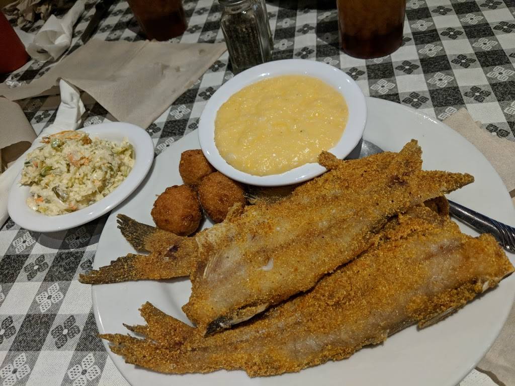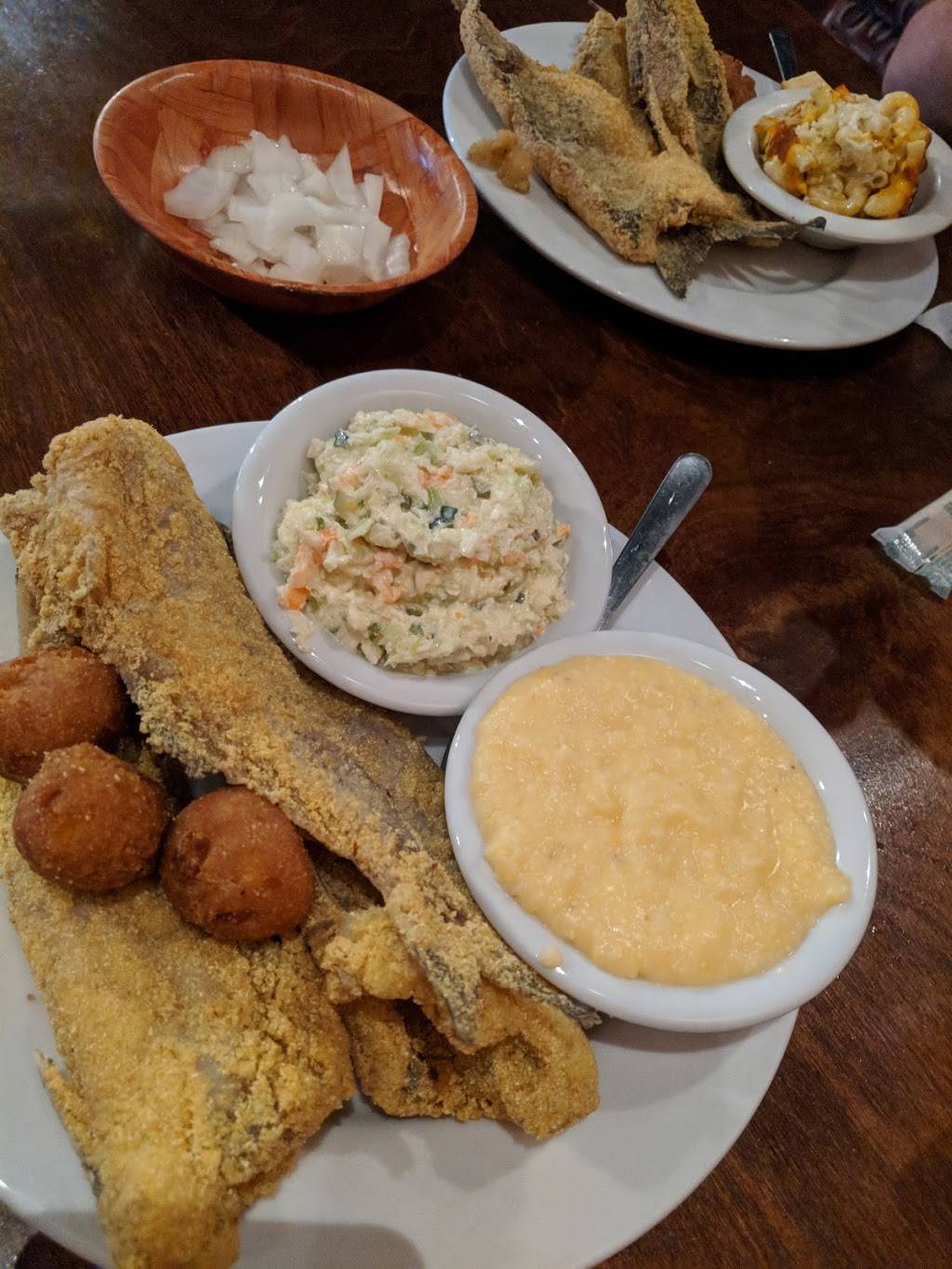 The fried shrimp were delicious. Great atmosphere. Wonderful service. Would definitely recommend. Only thing that I did not enjoy were the clam strips. The were not actually strips. More like bite size pieces of crumbs.