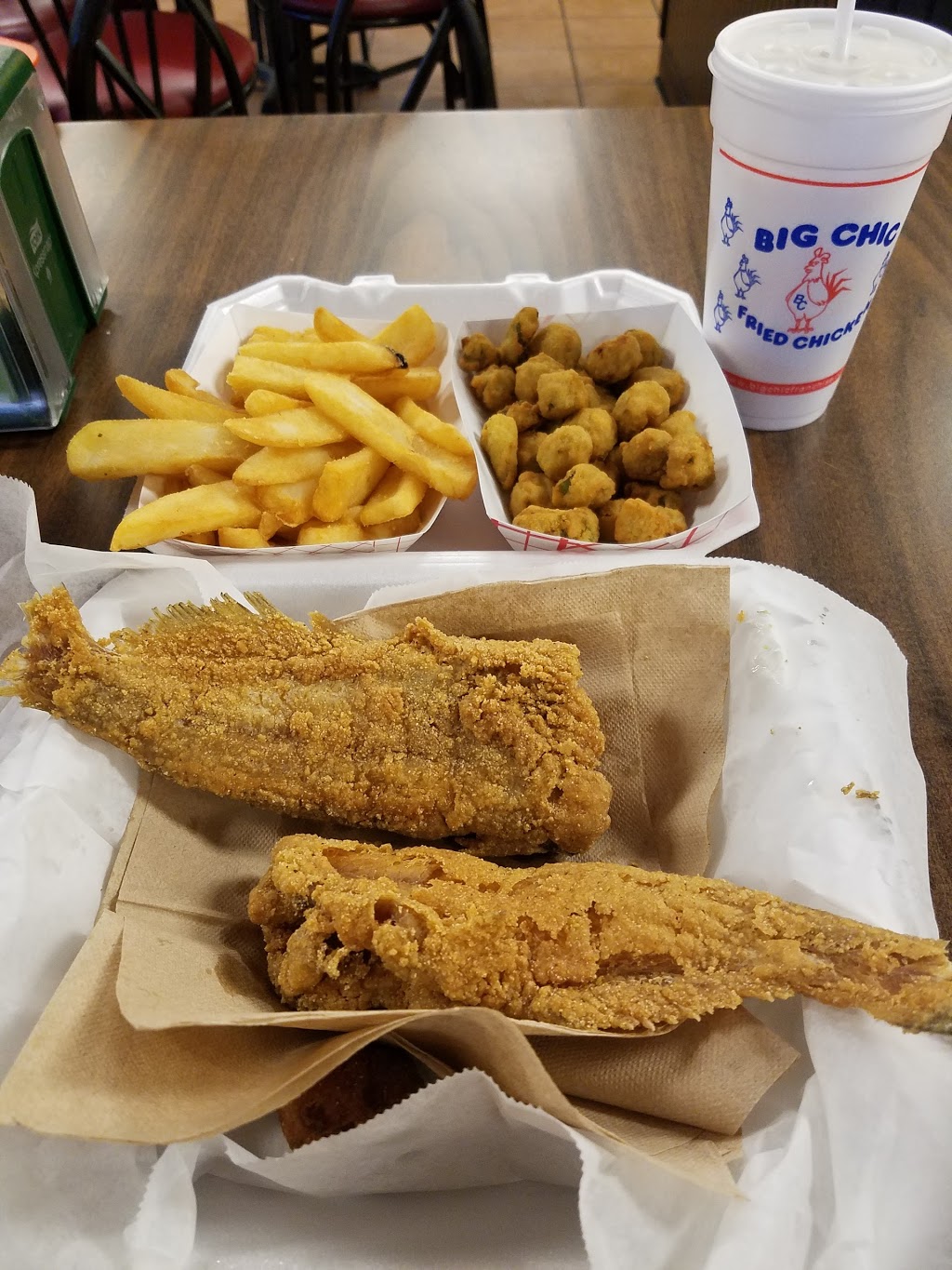 This is a great place to satisfy your fried chicken cravings. I have started to visit it more recently than I have in the past. The li e is normally long, but it is worth the wait. I think the line would move faster if they would fix their outside ordering intercom. The customer service is okay. The workers are not very friendly, but they are mostly efficient. They do not wear masks, so if you are bothered by that, you are forewarned. I normally order the same thing when I go. My son does not care for restaurant fried chicken, so he does not eat here unless it is the fries. He loves their steak fries. I love them too. This is the only Big Chic my husband will now eat at, since the performance of the others has dwindled over the past several months to years. I would definitely suggest this restaurant to others.