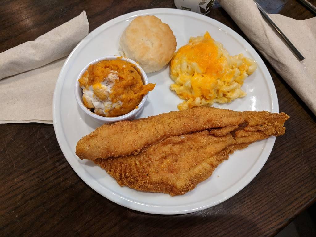 This restaurant has two options: 1) a hot cafeteria-style counter with different price points for different combinations (meat + 2 veggies, 4 veggies, etc) and 2) a counter service for the menu items posted on their website. One person in our party is vegan and the only option was the salad bar (part of the cafeteria-style counter). Even their rice is cooked with butter. However, an employee named Chris very graciously sauteed a bowl of yummy veggies and brought them out to her. Service at that level is rare these days and was very much appreciated! All of the foods tried by our party were excellent, except the old fashioned cake, which was dry. The squash casserole was amazing, as was the pecan pie. There are booths and tables for the restaurant area. There is also a juice bar and ice cream counter. The restaurant is connected to the market, which is also worth a visit. They mill grits on site and sell them in bags in the market.