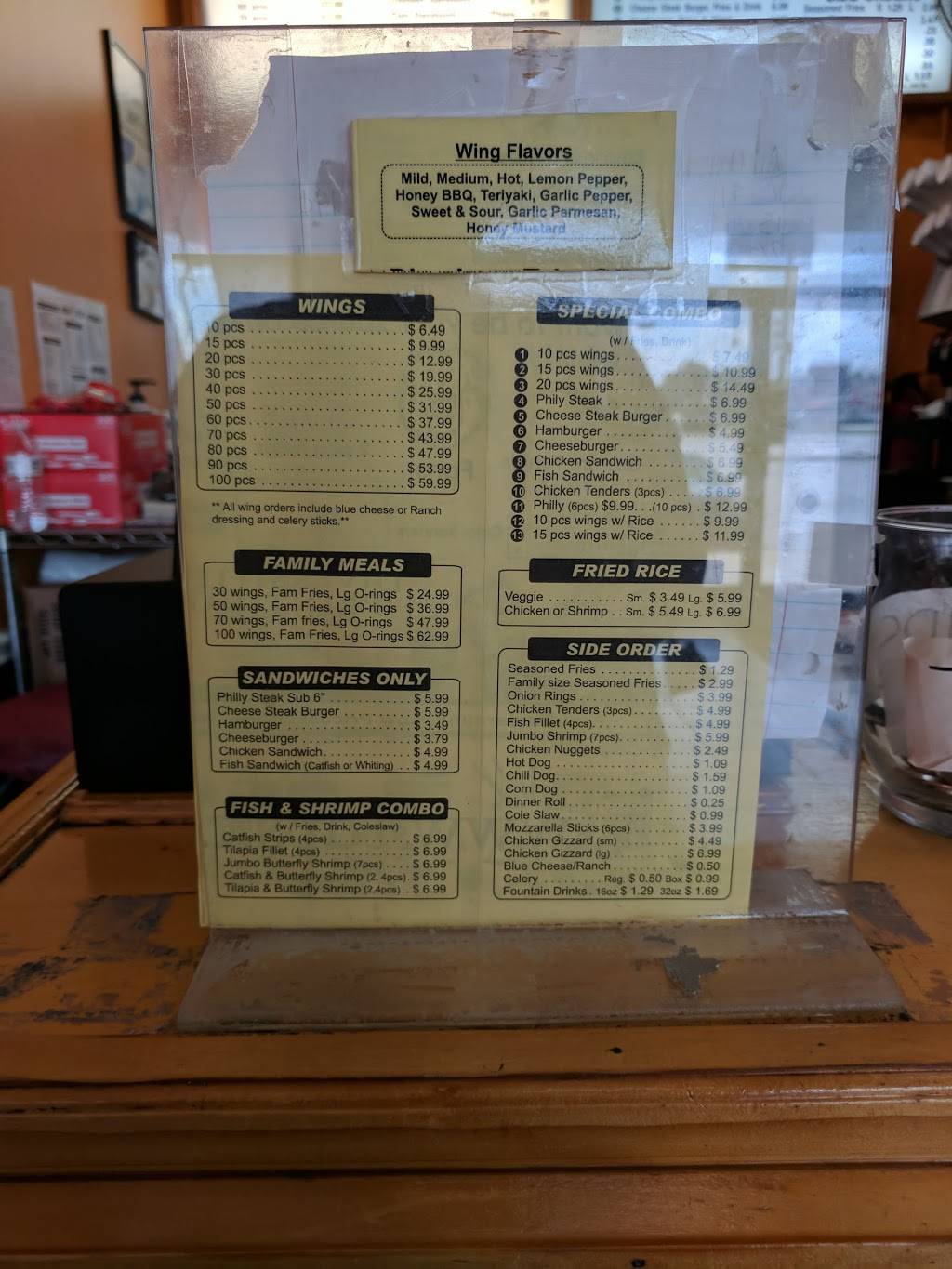 The wings were very average tasting. We ordered the lemon pepper and hot. The lemon pepper is pretty lemony and kind of sweet. The hot was pretty good in flavor. The biggest downside was the size of the wings. They were baby/infant wings, almost comical. I've attached a picture. We thought the prices were good for the amount we were getting but after seeing the size of wings, we should have ordered twice the amount to fill our stomachs.