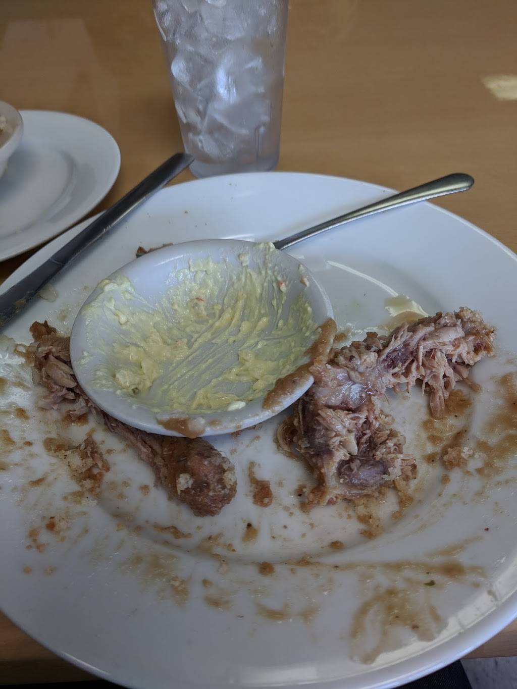 So I cleaned my plate. Smothered chicken is delicious. I used the bread to slop up the delicious gravy. My waitress, Stephanie was AMAZING!! The staff was friendly and the food was served hot. I will be back.
