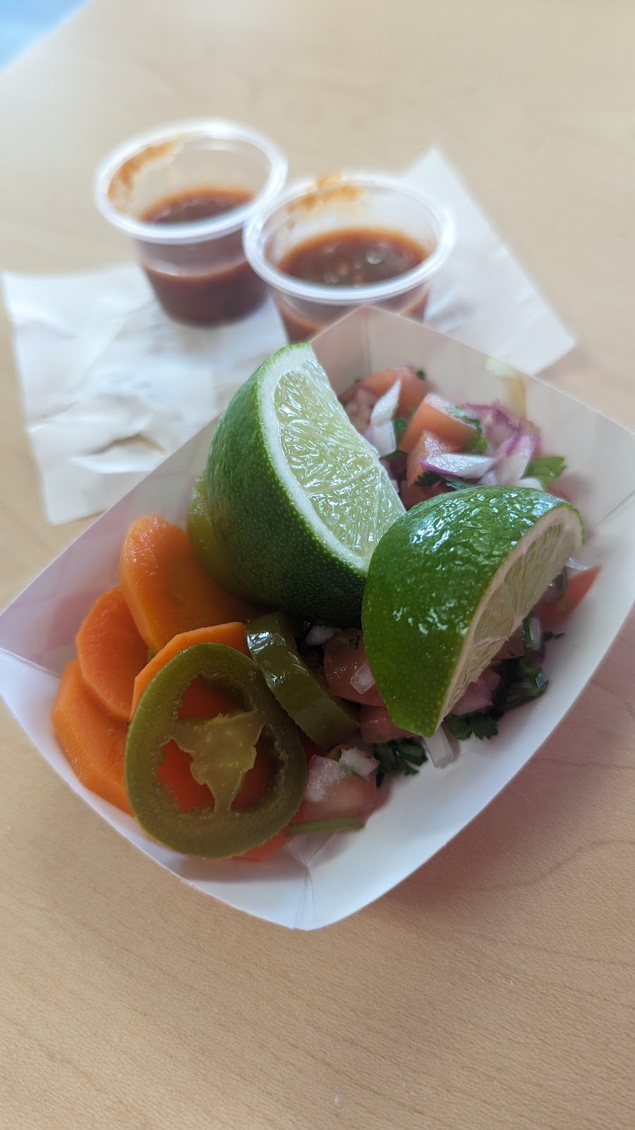 Was so excited when I saw this place was opening. Have eaten here a couple times since they opened. Staff was super friendly. The tacos were delicious. The only reason for the 4 instead of 5 stars is the queso doesn't come with chips they had to be purchased separately, and I wasn't a fan of the salsa. When I opened the thing of salsa it looked like tomato sauce and tasted like tomato sauce with a little bit of spice. I was missing the onion and cilantro that you typically see in salsa. Great value for the price, will definitely continue supporting this small business. Also if they had Mexican cokes to go with the food that would be great, but that's just my opinion.