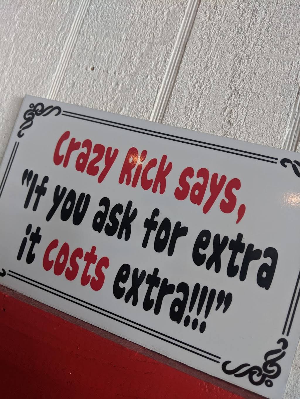 Had lunch at Crazy Rick's and enjoyed the Philly Cheese steak. The food was good but our service was PERFECT. Awesome waitress. Friendly smile and she checked on us over and over again. We will be back to sample more good food.