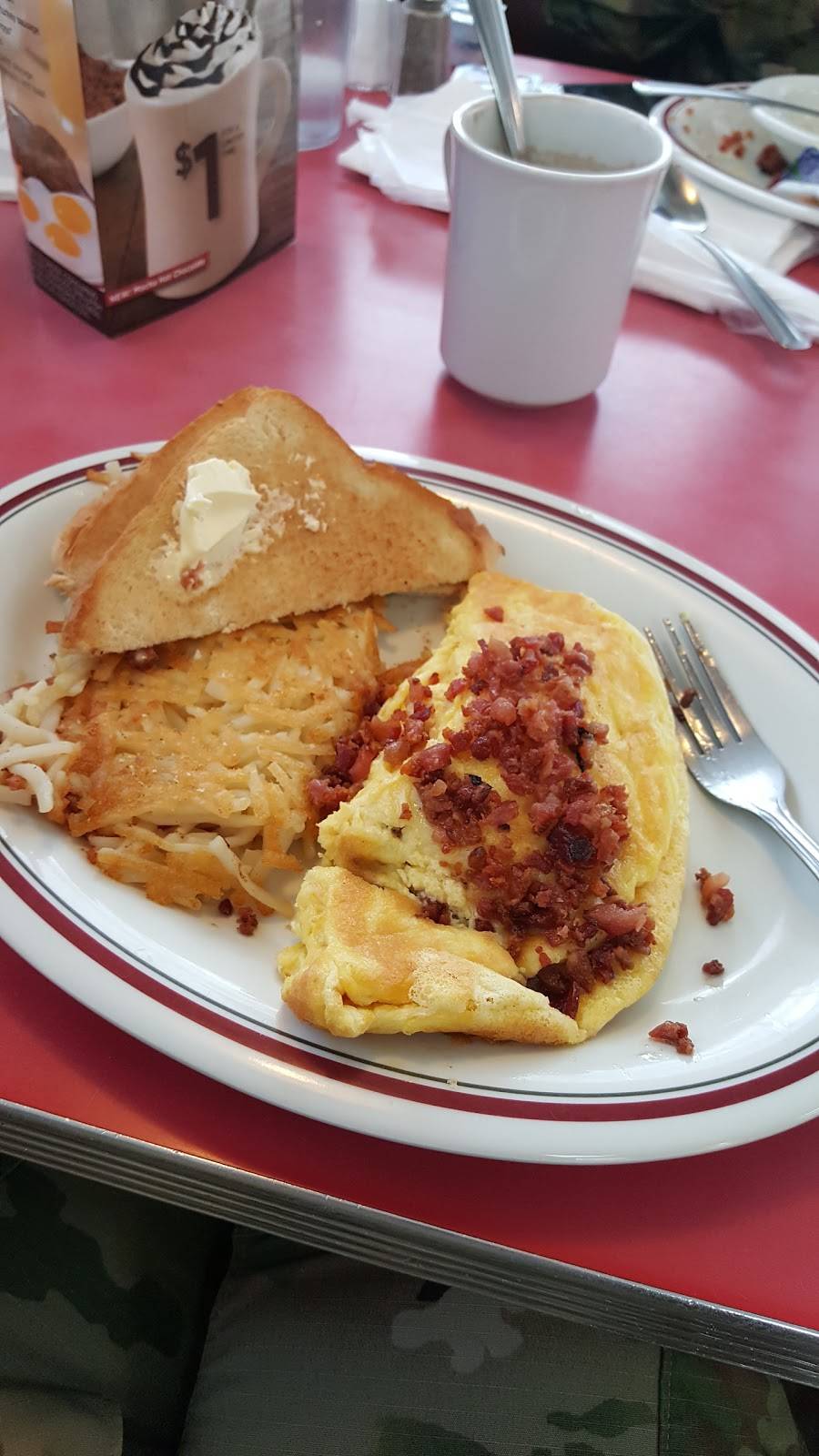 Well satisfied customer, the food was cooked just right. No compliants here I ordered the waffles, grits, hashbrown, eggs, and sausage ????. I was full happy and surprised that my grits had flavor with a home cooked touch.