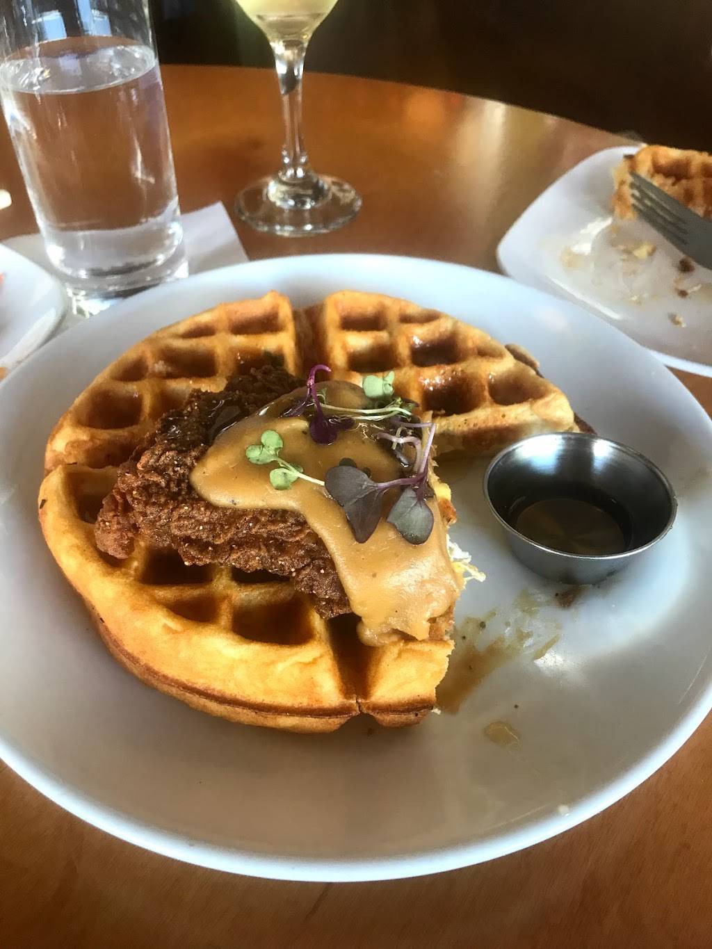 Great food and outdoor seating. Quiet since its right off the main street. A few gluten free options and all were excellent and not lacking anything, could be more options though.
