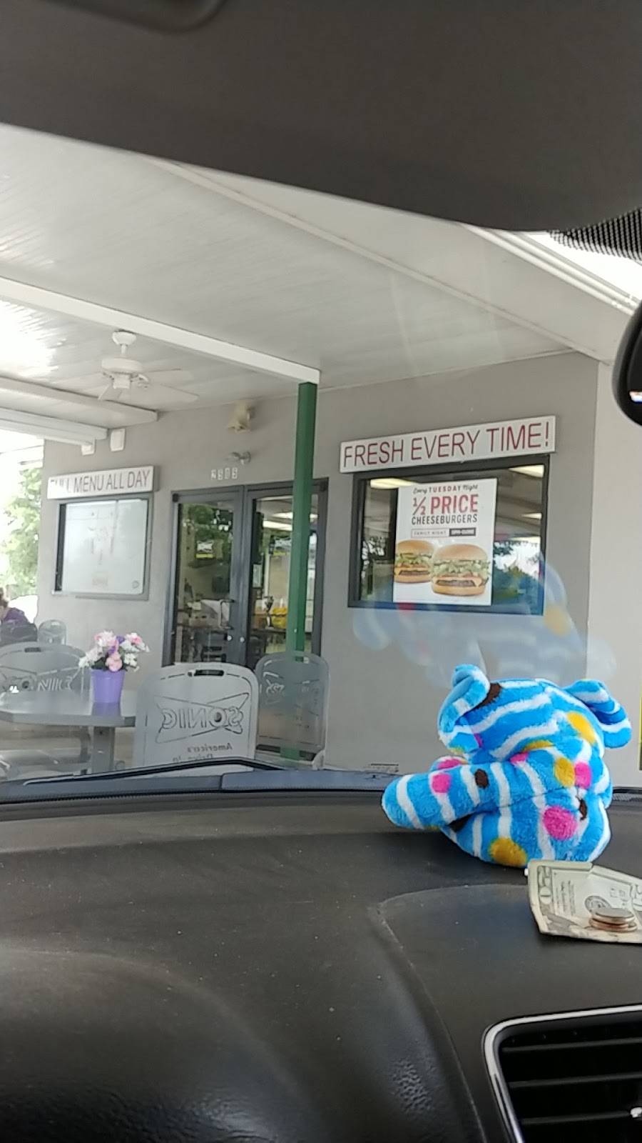 Happy hour is nice with cheap prices and great drinks but the hot dogs and tots are not the greatest. I would go to Sonic for the drinks and burgers but if you can go to Nathans for hot dogs. And the service is not great but it's not bad.