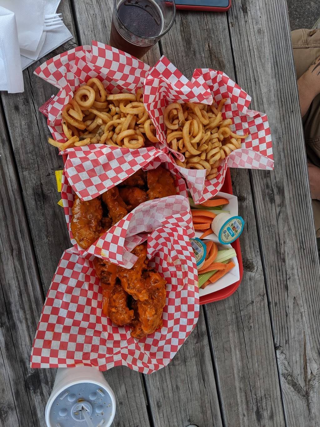 Wings are teeny tiny but good. I ate here last week and they changed the shredded cheese which made my salad taste totally different and they changed curly fries to crinkle cut. Disappointed to be honest. Consistency is what makes a restaurant. You will pay about 11.00 for a meal
