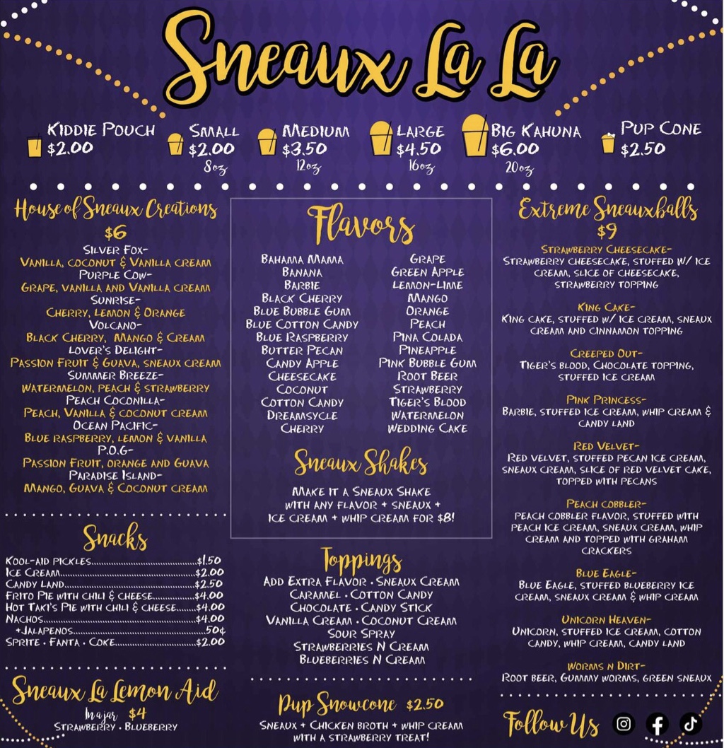 You can review this Business and help others by leaving a comment. If you want to share your thoughts about SNEAUX LA LA, use the form below and your opinion, advice or comment will appear in this space.